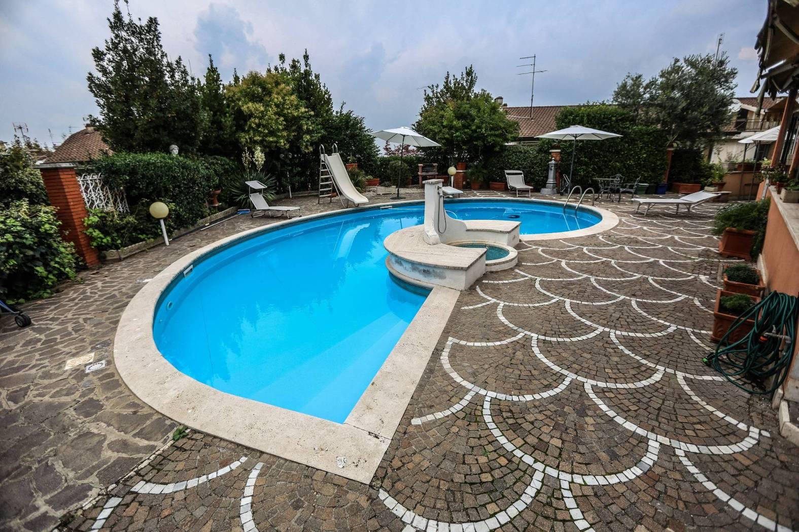 Nel cuore di Frascati, vendesi splendido appartamento all’interno di una villa elegante con piscina privata e piano hobby. L’immobile si trova in un contesto tranquillo e riservato, a pochi passi dal centro e da tutti i servizi, ideale per chi desidera vivere nei Castelli Romani con confort, privacy e spazi esclusivi. Caratteristiche principali: appartamento luminoso, piscina privata, giardino e spazi esterni, contesto signorile e silenzioso, posizione centrale, facile collegamento con Roma. Soluzione ideale, sia come abitazione principale, sia come investimento. Composizione: soggiorno ampio e luminoso con accesso diretto al giardino e alla piscina privata, cucina abitabile, 3 camere da letto di cui una padronale con bagno privato, 2 bagni, hobby, sala biliardo e spazi extra, piano seminterrato con accesso anche indipendente.