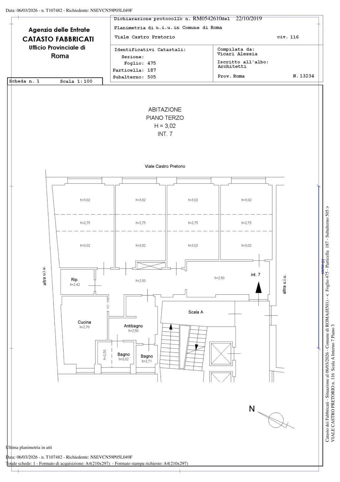 Vendesi appartamento molto luminoso proprio nei pressi della fermata della metro B di Castro Pretorio. L'immobile, finora utilizzato come ufficio, ma accatastato come A/2, è al terzo piano di un palazzo con doppio ascensore e servizio di portineria. Attualmente è composto da ingresso, cinque stanze, due bagni con ampio antibagno e uno spazioso ripostiglio. Affaccio aperto e pieno di luce. Il riscaldamento è centralizzato con i contabilizzatori di calore, mentre le spese di condominio sono di circa 200,00 € mensili.