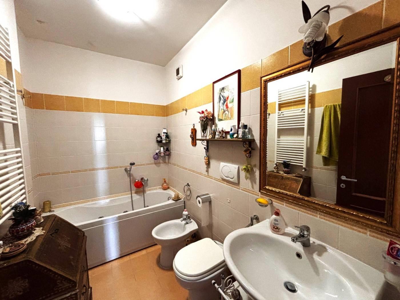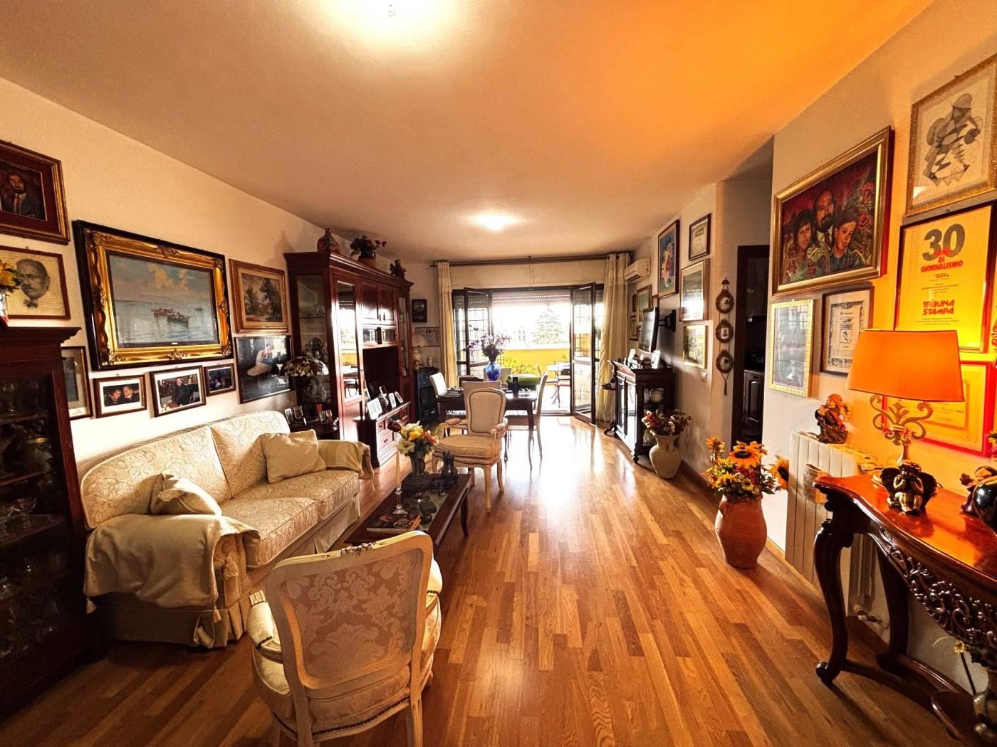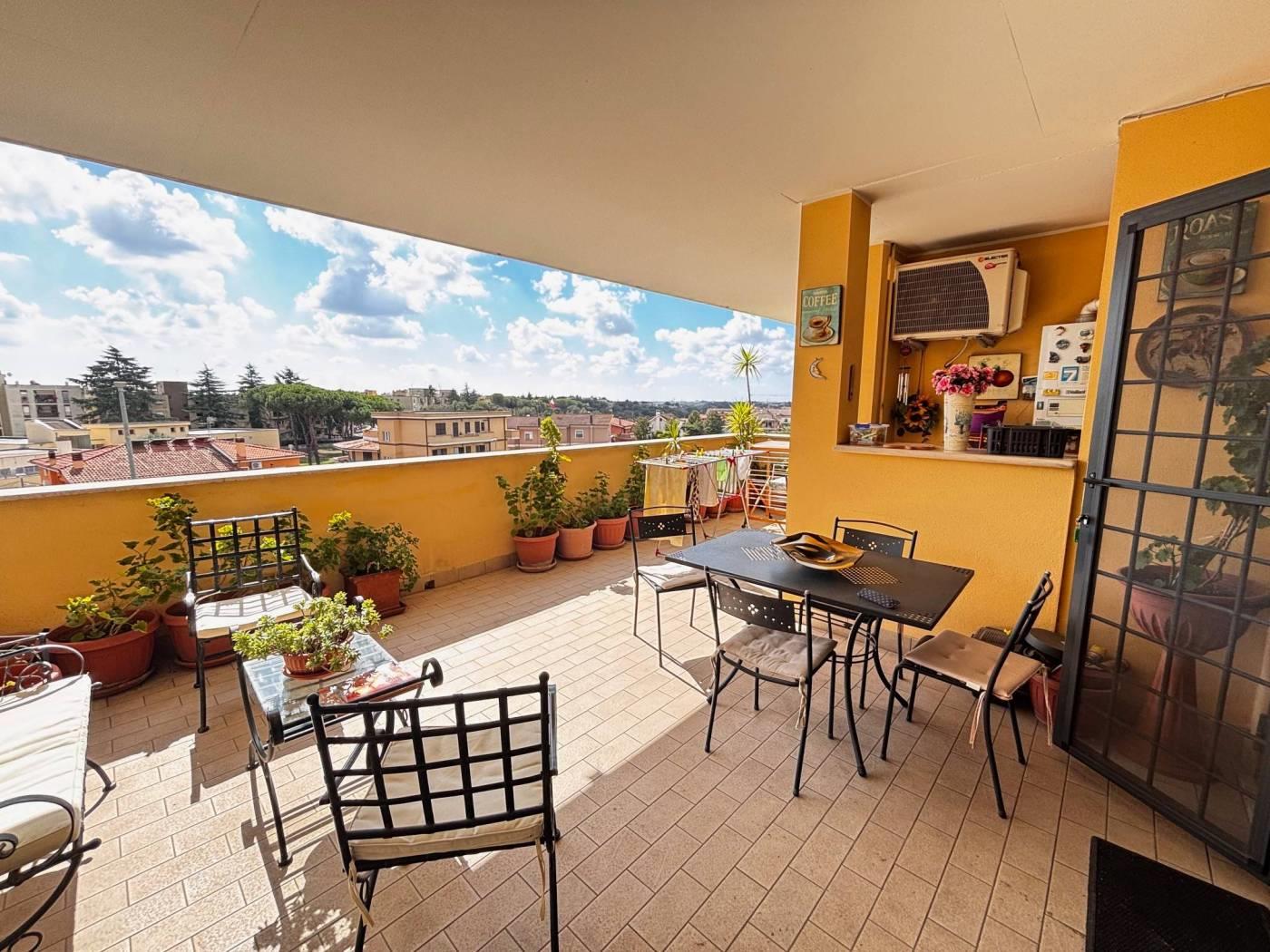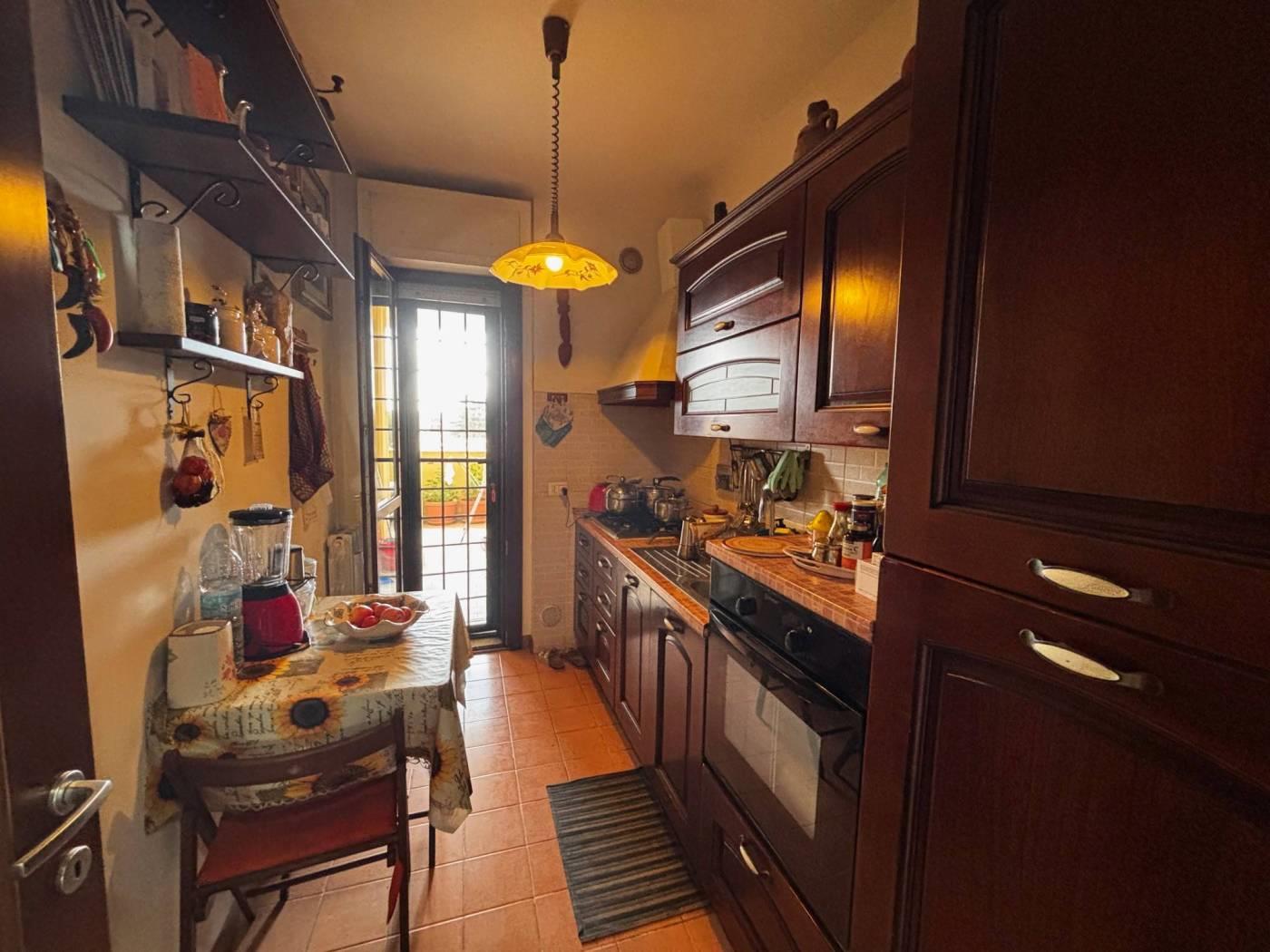 L'immobile è composto da ingresso, ampio salone, tre camere da letto, doppi servizi, cucina semi abitabile (tavolo per 2 persone), bellissimo terrazzo vivibile; completa la proprietà una soffitta.
