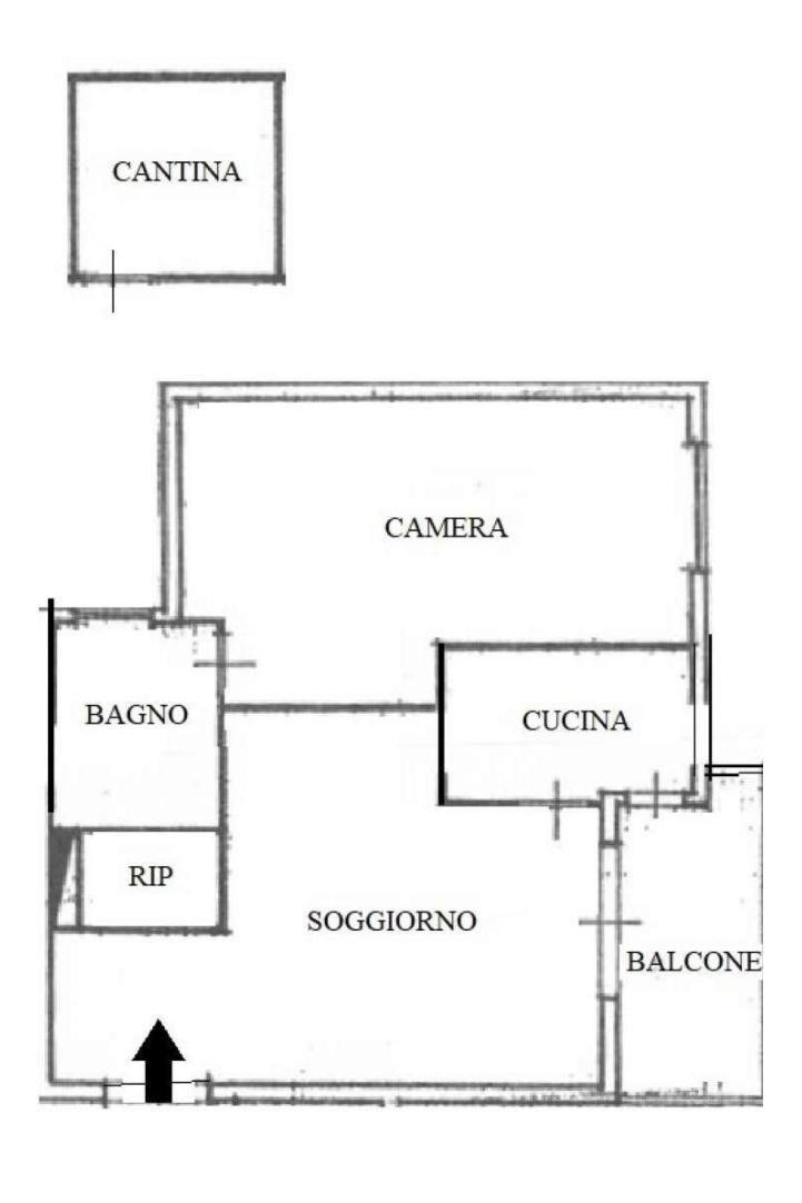 DESCRIZIONE IMMOBILE: Appartamento posto al primo piano composto da ingresso soggiorno camera da letto cucina bagno ripostiglio balcone cantina e posto auto scoperto.