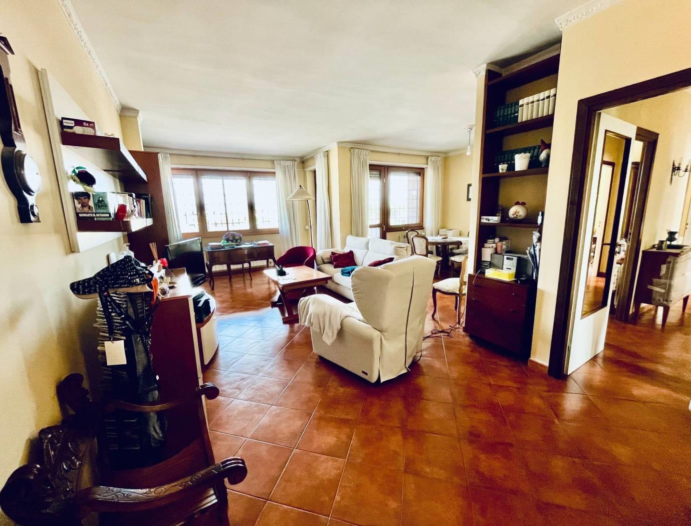 Al suo interno è così composto: entrando veniamo accolti sulla sinistra, da un bellissimo salone doppio con accesso al grande balcone vivibile, coperto e panoramico; sulla destra invece, si accede alla camera padronale con annesso bagno con vasca ed anticamera con comodo armadio su misura e libreria. Tornando all'ingresso, da un'ampio corridoio si accede inizialmente alla cucina vivibile con balcone di servizio coperto e panoramico e, proseguendo, troviamo due grandi camere da letto, un comodo ripostiglio ed il secondo bagno con doccia.