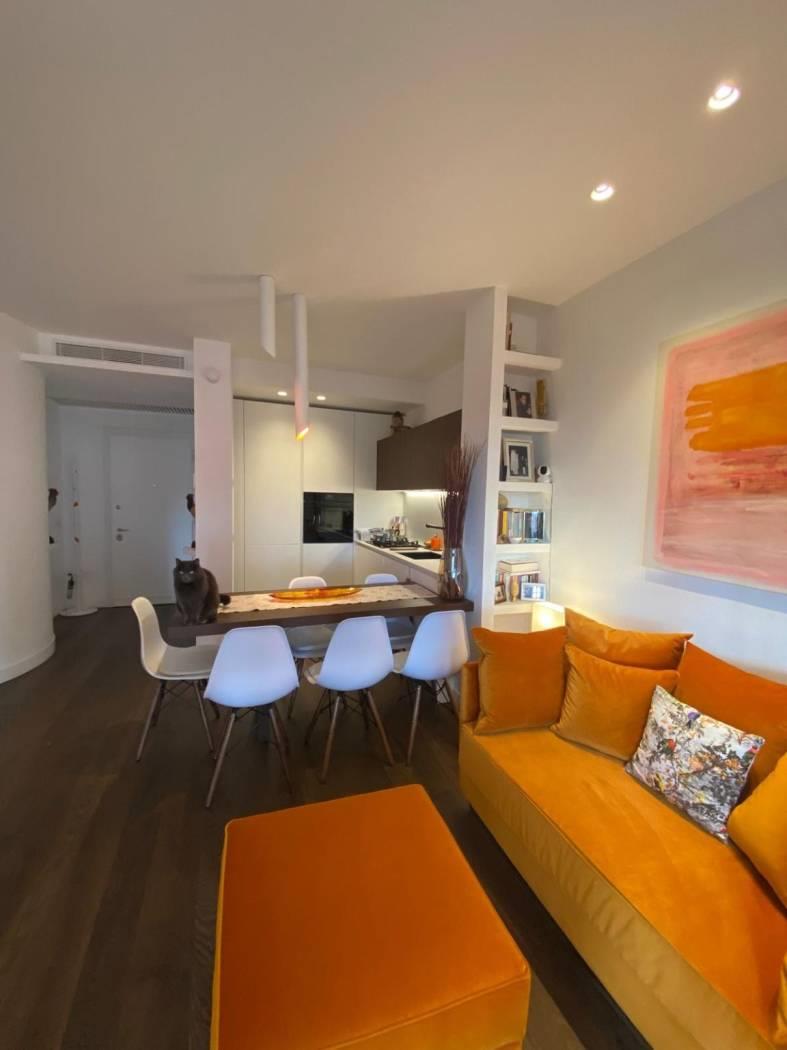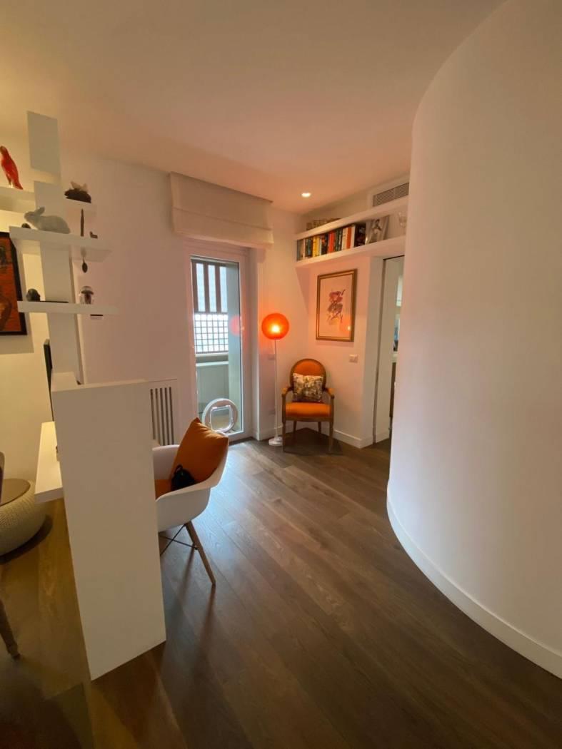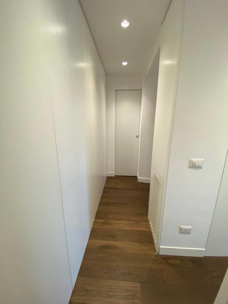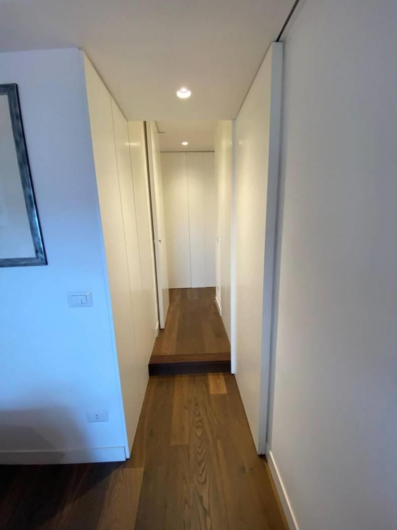 L'immobile è composto da ingresso, cucina con penisola che divide perfettamente il salone, studio , camera da letto , due cabine armadio e due bagni, armadi a scomparsa in tutta la zona notte e adiacenti ai due bagni, riscaldamento autonomo, aria condizionata (tutti i motori sono all’esterno ), Impianto allarme, Doppi vetri.
