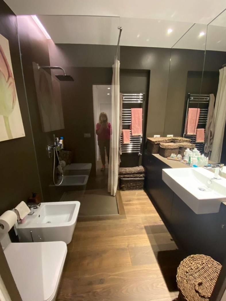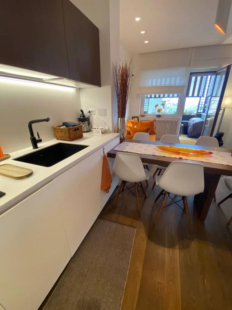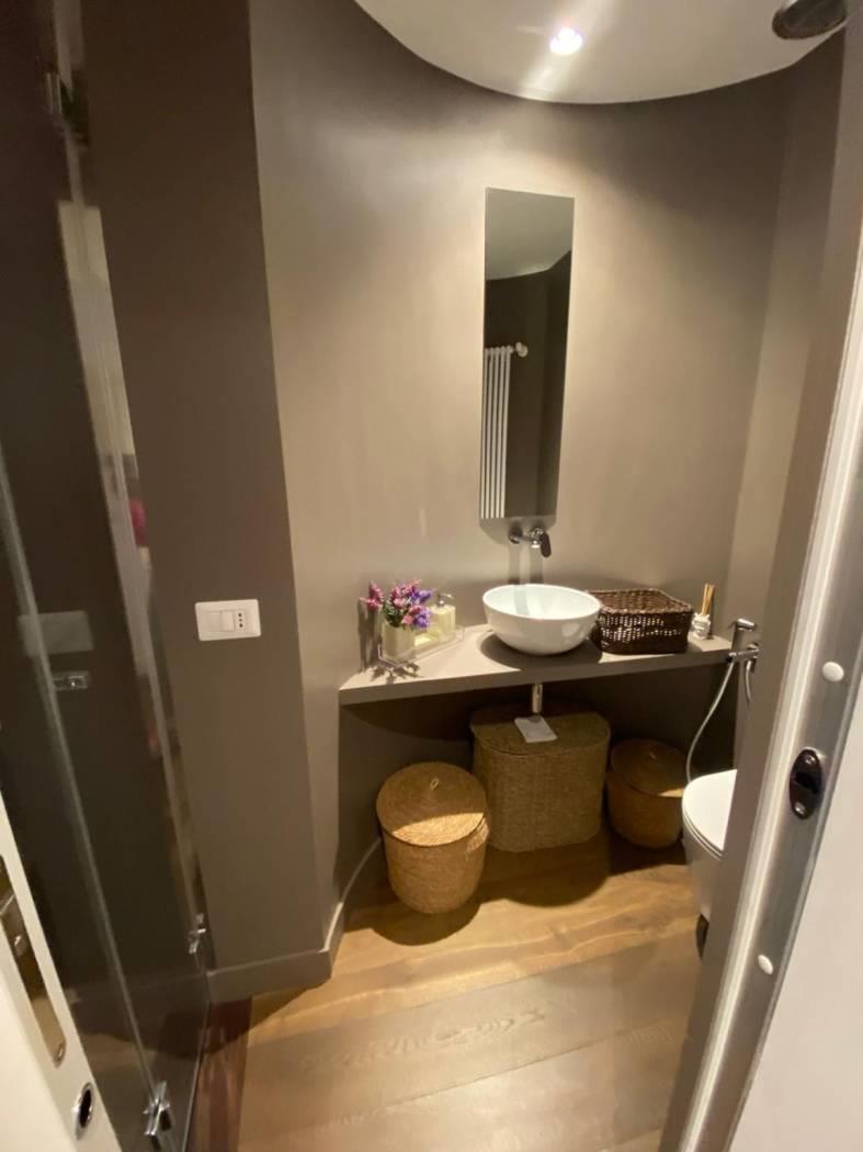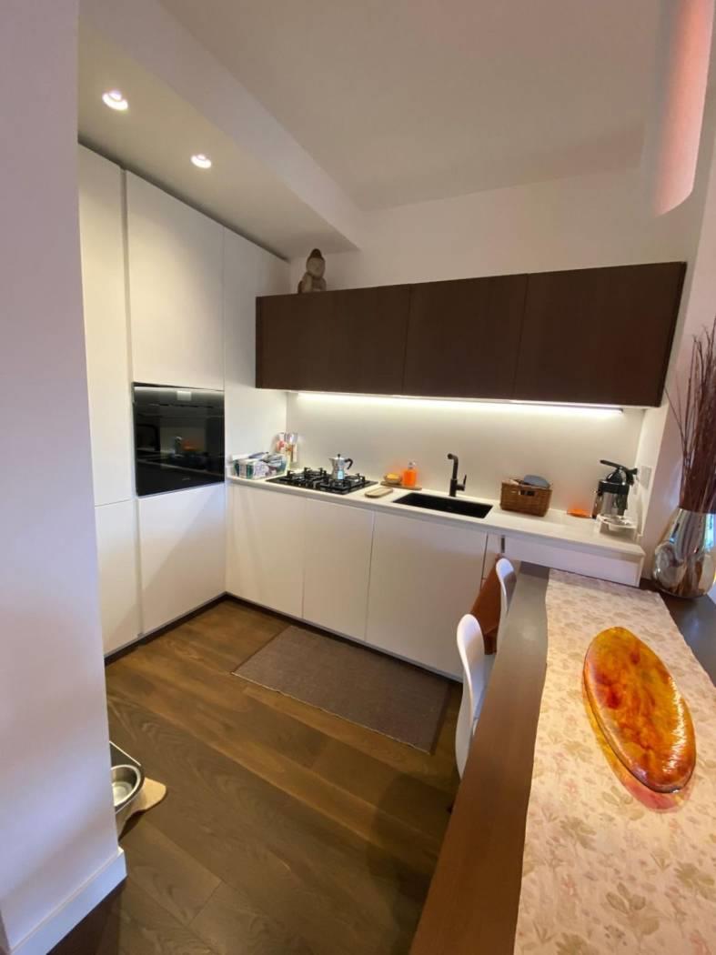 L'immobile è composto da ingresso, cucina con penisola che divide perfettamente il salone, studio , camera da letto , due cabine armadio e due bagni, armadi a scomparsa in tutta la zona notte e adiacenti ai due bagni, riscaldamento autonomo, aria condizionata (tutti i motori sono all’esterno ), Impianto allarme, Doppi vetri.