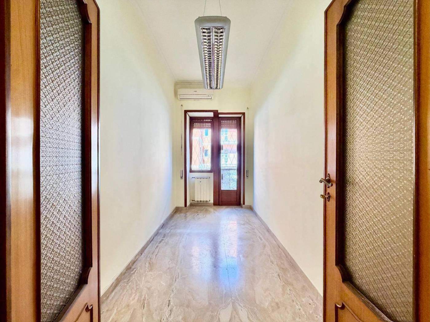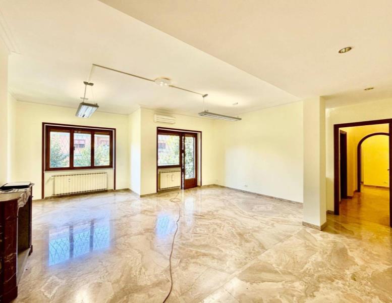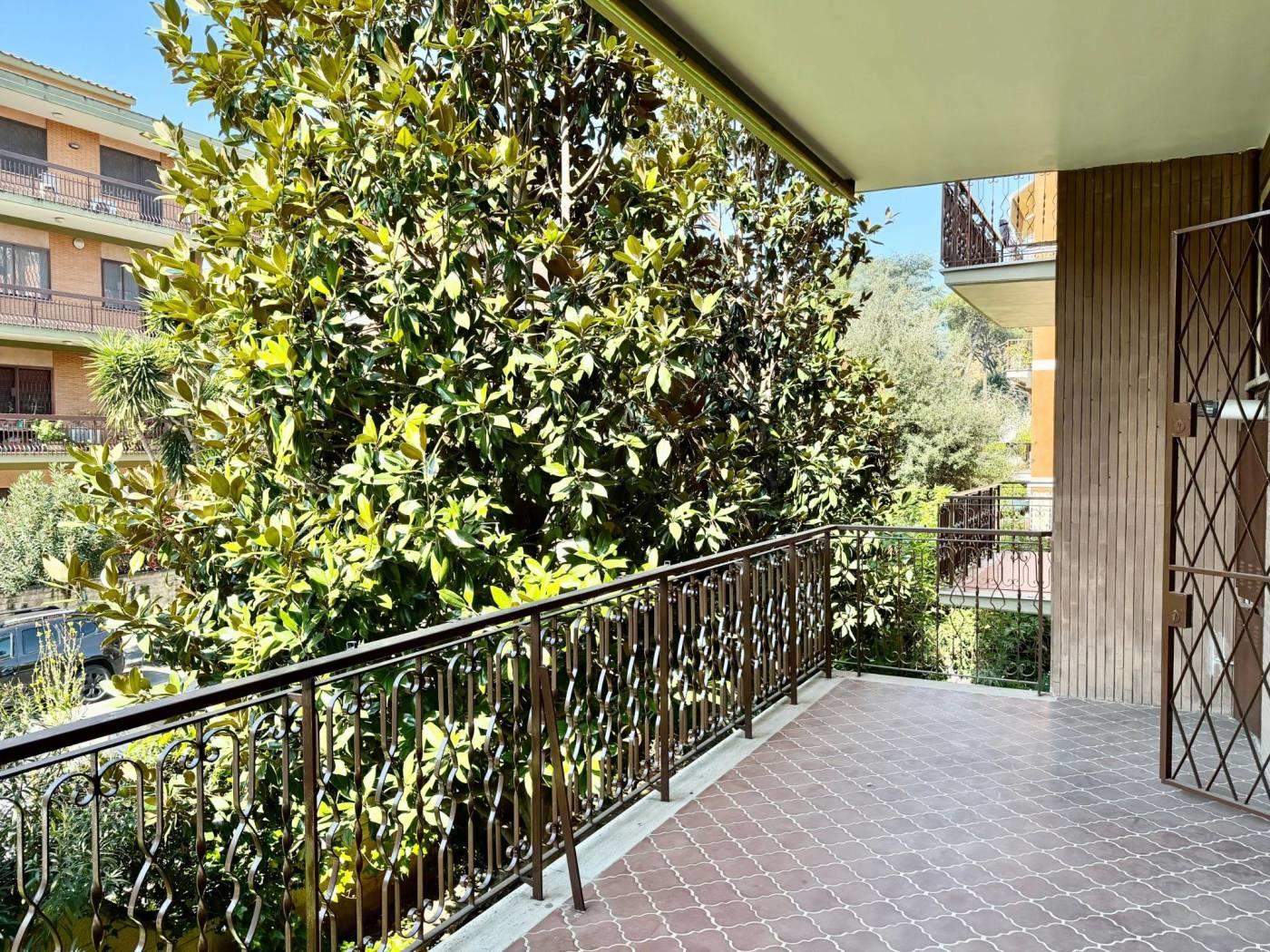 L'immobile si apre su un ampio soggiorno che ospita un camino d'epoca e dà accesso diretto a un vivibile terrazzo. Adiacente al soggiorno si trova la cucina abitabile sempre con accesso al terrazzo, un disimpegno provvisto di funzionali armadi a muro conduce alla zona notte caratterizzata da pavimenti in legno, qui si trovano tre camere. Una camera con terrazzo privato, una seconda camera da letto e una cameretta completa di balconcino, completa la rporietà un servizio finestrato con vasca.