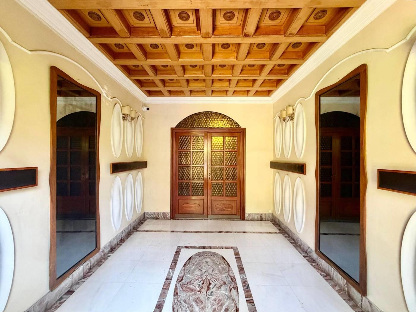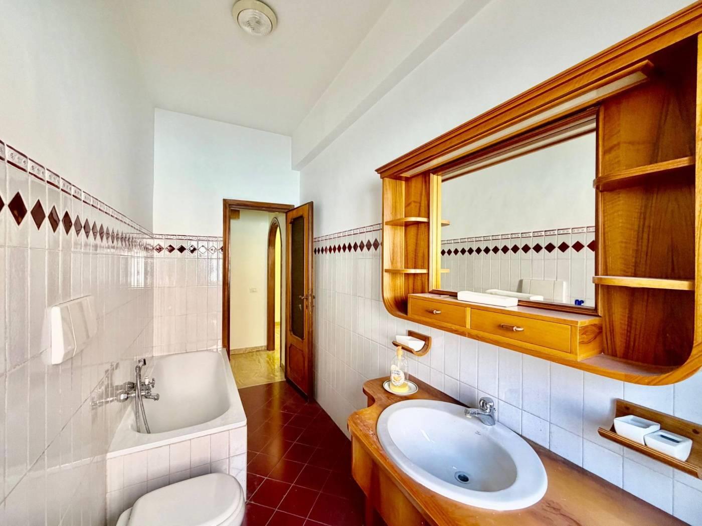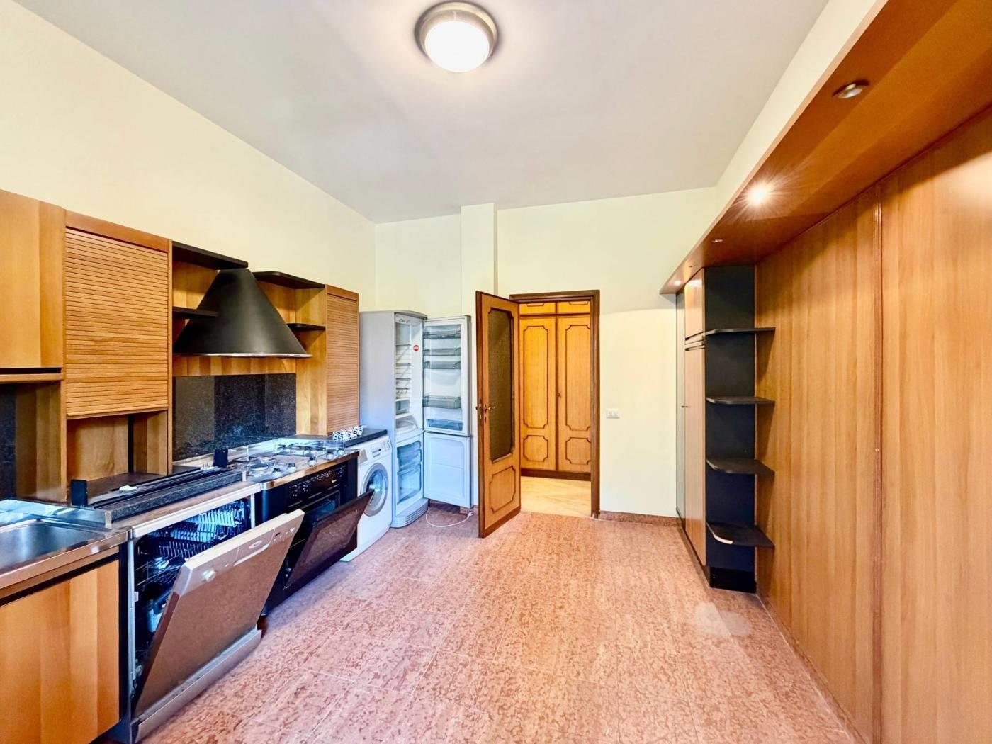 L'immobile si apre su un ampio soggiorno che ospita un camino d'epoca e dà accesso diretto a un vivibile terrazzo. Adiacente al soggiorno si trova la cucina abitabile sempre con accesso al terrazzo, un disimpegno provvisto di funzionali armadi a muro conduce alla zona notte caratterizzata da pavimenti in legno, qui si trovano tre camere. Una camera con terrazzo privato, una seconda camera da letto e una cameretta completa di balconcino, completa la rporietà un servizio finestrato con vasca.