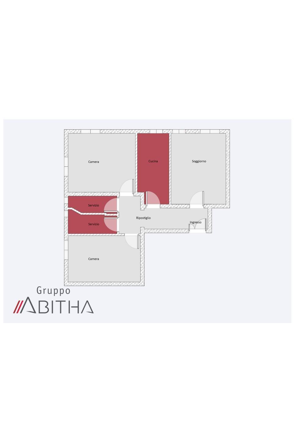 L'immobile ha una superficie di 103 mq. catastali distribuiti ottimamente ed è così composto : ampio ingresso con armadio a muro, soggiorno, due camere matrimoniali, cucina abitabile, doppi servizi con finestra .