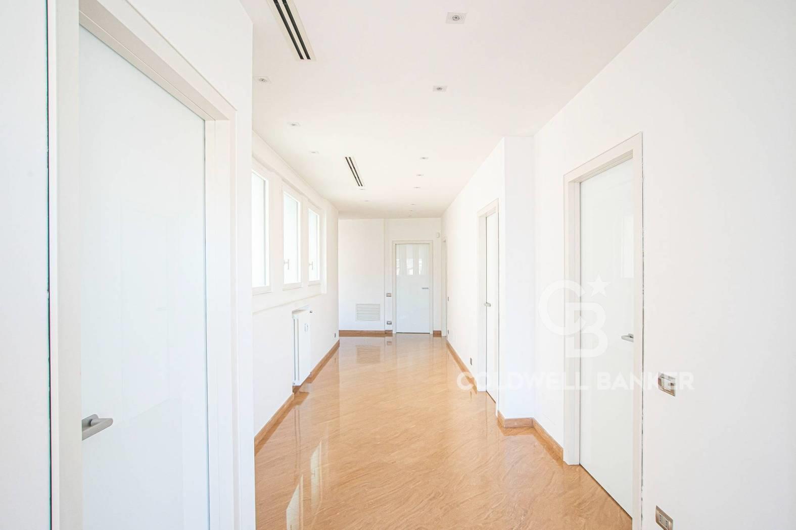 La superficie di circa 160 mq è valorizzata da una tripla esposizione esterna, con finestre su quattro lati, terrazza, balconi e affacci aperti che garantiscono una luminosità straordinaria per l’intero arco della giornata. Le ampie superfici vetrate creano una piacevole continuità tra gli ambienti interni ed esterni, rendendo l’atmosfera particolarmente ariosa e raffinata.
