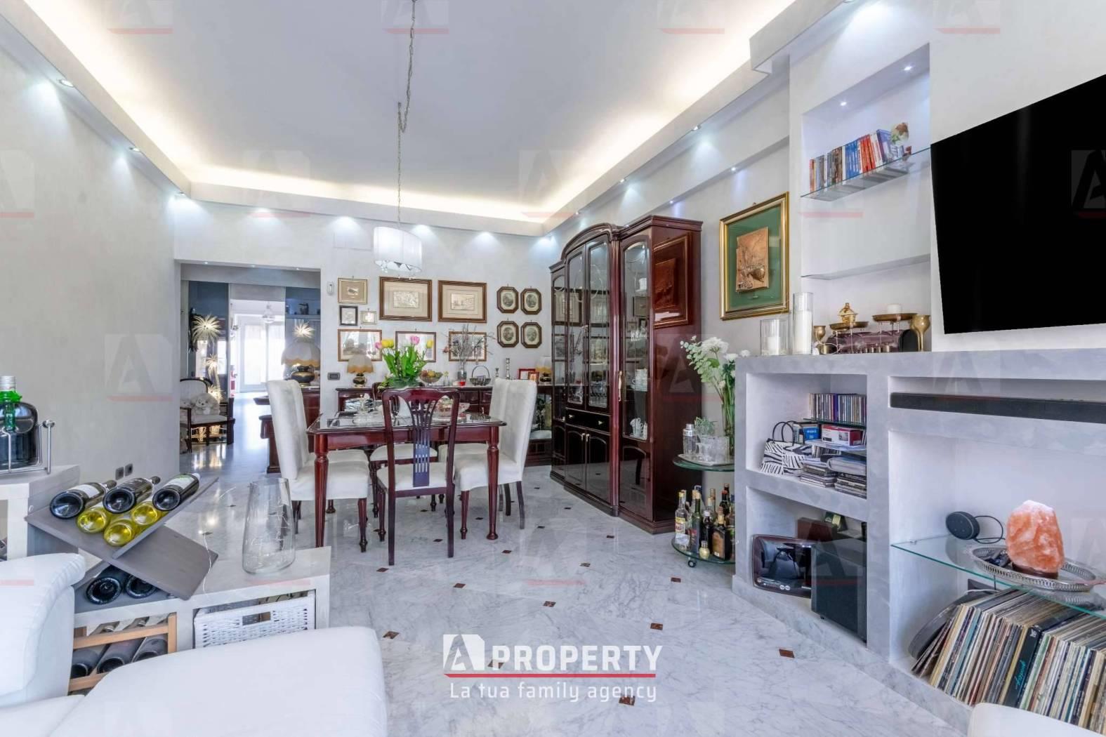 Il soggiorno ampio e soleggiato diventa l’ambiente ideale per momenti di relax e convivialità.