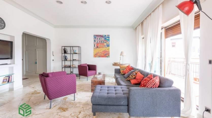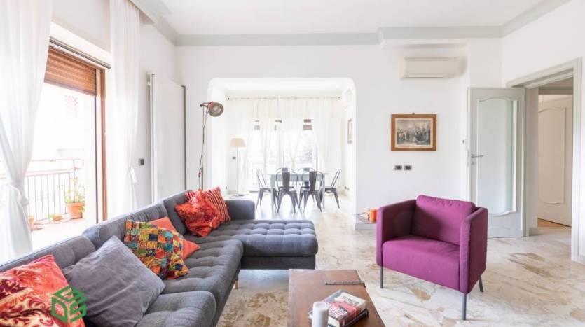 in comprensorio si vende un appartamento completamente ristrutturato e arredato con materiali di pregio-140 mq+ grandi balconi che circondano tutta la casa-3°piano. l'appartamento e' composto da: doppi ingressi con armadi-salone con pavimento in marmo-pranzo-(entrambi affacciano su di un grande balcone)- cucina arredata con balcone- 3 camere da letto con parquet-2 bagni-aria condizionata-tapparelle elettriche-riscaldamento autonomo-cantina possibilita' di acquistare un box di circa 40 mq sotto il palazzo . .l'appartamento e' molto luminoso-casa valida