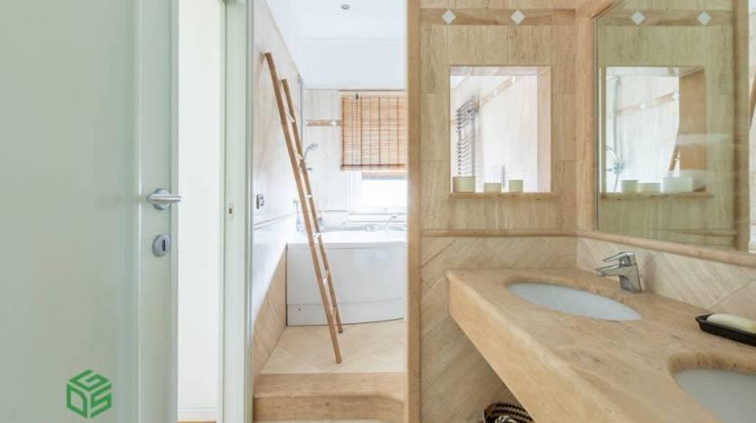 an appartment completely renovated with prestigious materials - 140 sqm + large balconies surrounding the whole house - 3rd floor. the apartment consists of: double entrance with plenty of cabinets -living room with marble floor -dining room - (both lays up on a large balcony) - furnished kitchen with balcony- 3 bedrooms with parquet-2 bathrooms- air conditioning- electric shutters- autonomous heating- storage- there is an option to buy large box for 2 autos