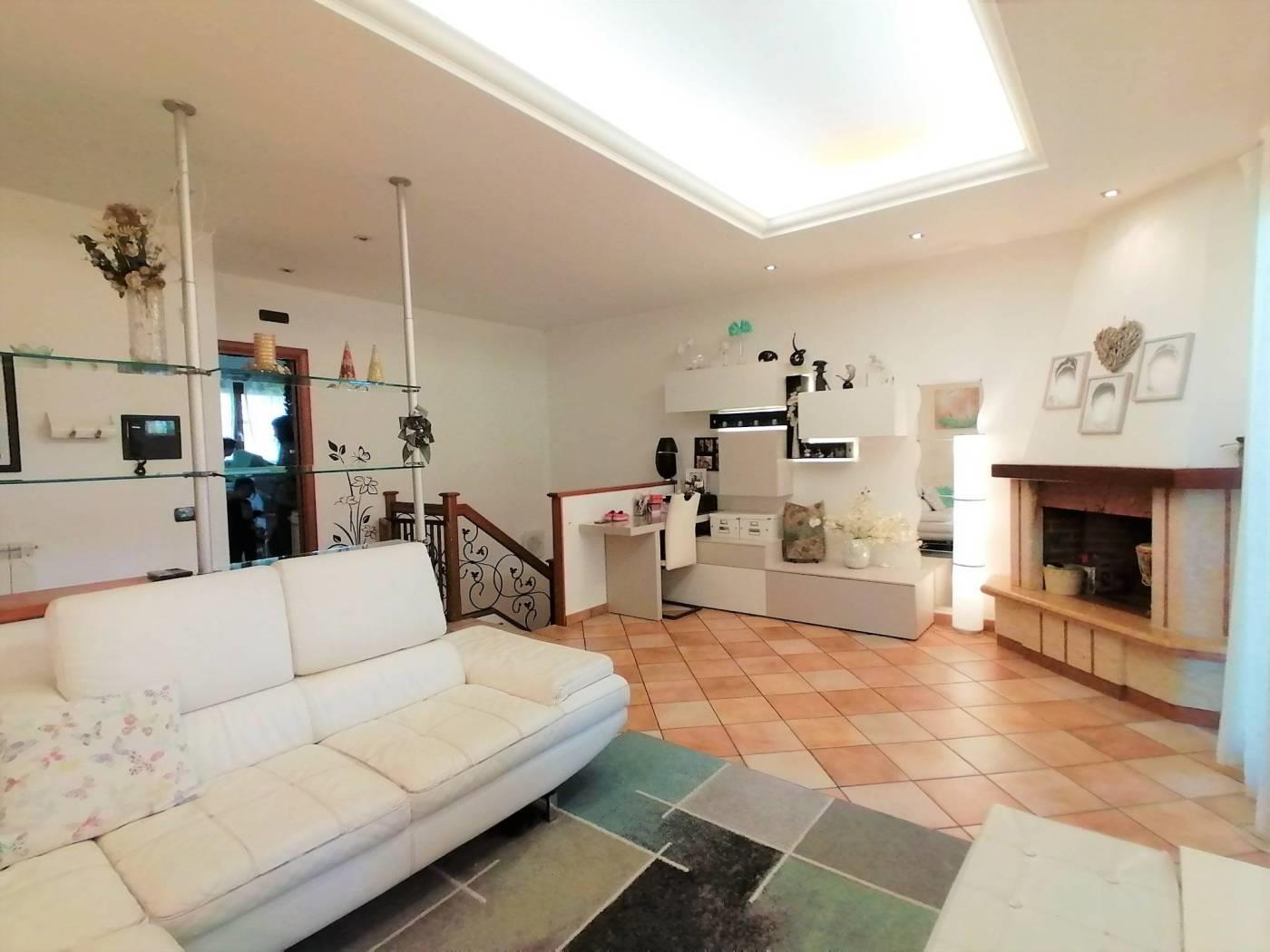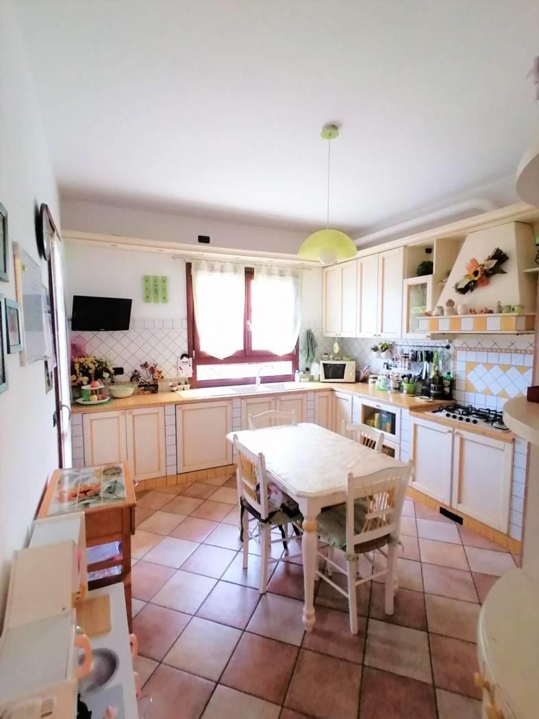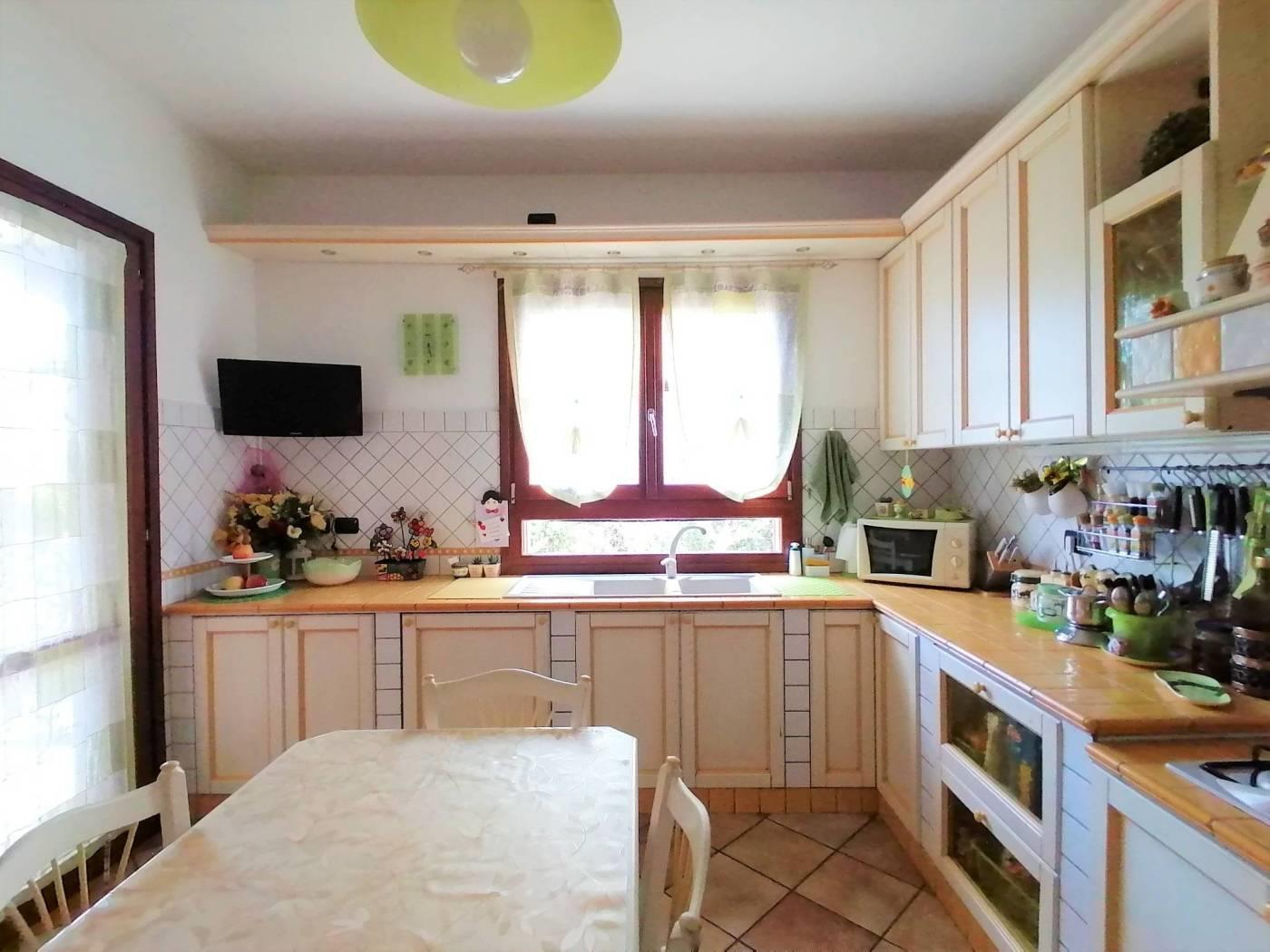 PIANO TERRA: ingresso ed ampio soggiorno con camino con sfogo esterno sul giardino frontale, in parte a verde ed in parte pavimentato, ampia cucina abitabile separata, in muratura e con sfogo esterno sul giardino retrostante, bagno di servizio con doccia e finestra;