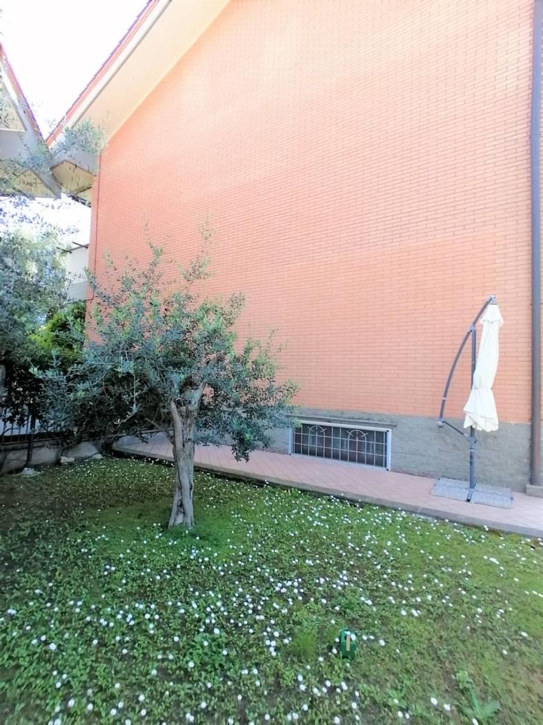PIANO SEMINTERRATO: accessibile tramite una comoda scala interna in muratura e rivestita in legno, composto da ampia camera matrimoniale con cabina armadio e piccolo studio (tutto finestrato), seconda camera matrimoniale con sfogo esterno su una loggia interna, secondo bagno con vasca, accesso diretto al box auto interno e comunicante con la sala hobby. Internamente l’immobile si presenta in ottime condizioni (pari al nuovo), è posto all'interno di una palazzina in cortina in ottimo stato di conservazione e manutenzione, e situato all’ interno di un residence privato chiuso da cancello carrabile e pedonale, con giardini a servizio degli immobili e parco condominiale (250 mq circa).