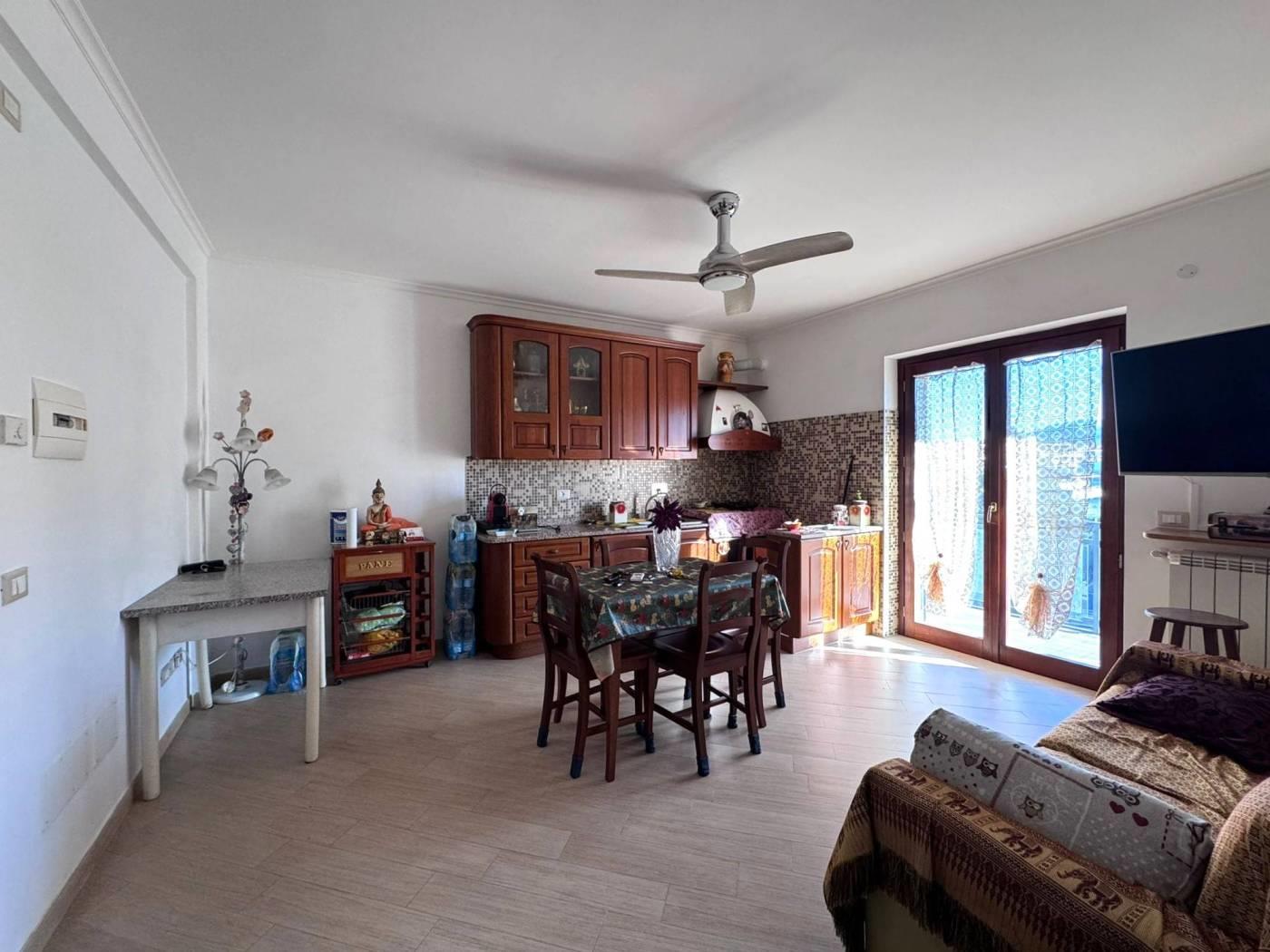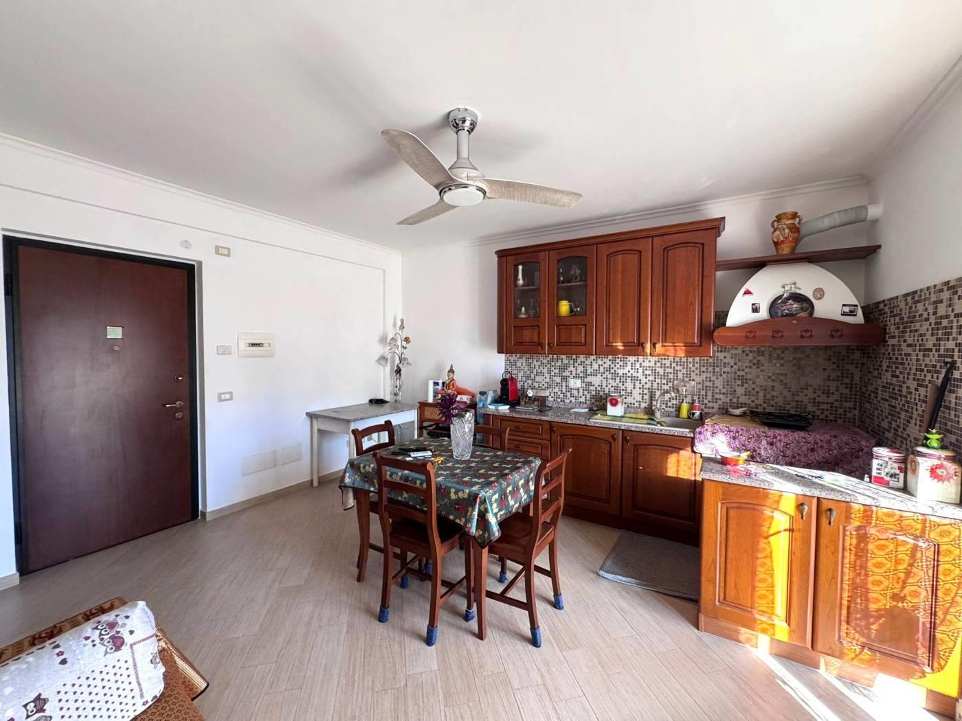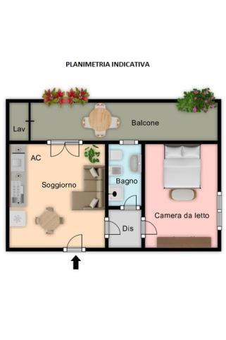 L’appartamento si compone di un ampio soggiorno a vista con angolo cottura, disimpegno, camera matrimoniale, bagno ed un comodo balcone/terrazzo abitabile dove possiamo trovare un armadio con vano lavanderia.