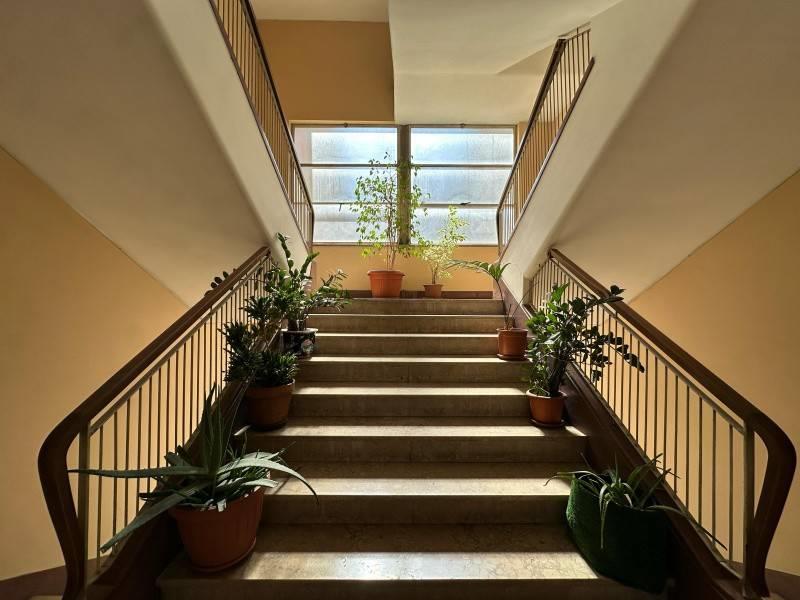 Composizione : Ampio ingresso disimpegno, salone (22,5 mq.) , due camere (matrimoniale di 20 mq.), cameretta, cucina , doppi servizi ripostiglio, balcone (12 mq) , oltre una comoda soffitta luminosa al piano 7°.