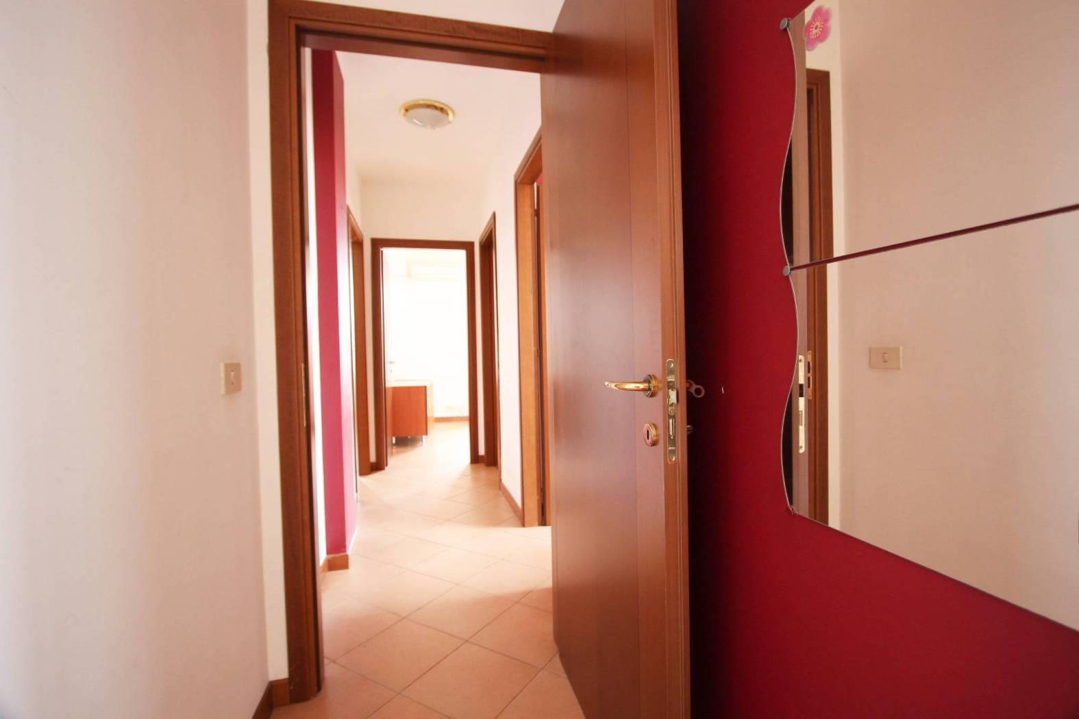 Ingresso e soggiorno luminoso con accesso al terrazzo, tre camere matrimoniali, un bagno principale vasca e finestra, un bagno padronale, cucina.