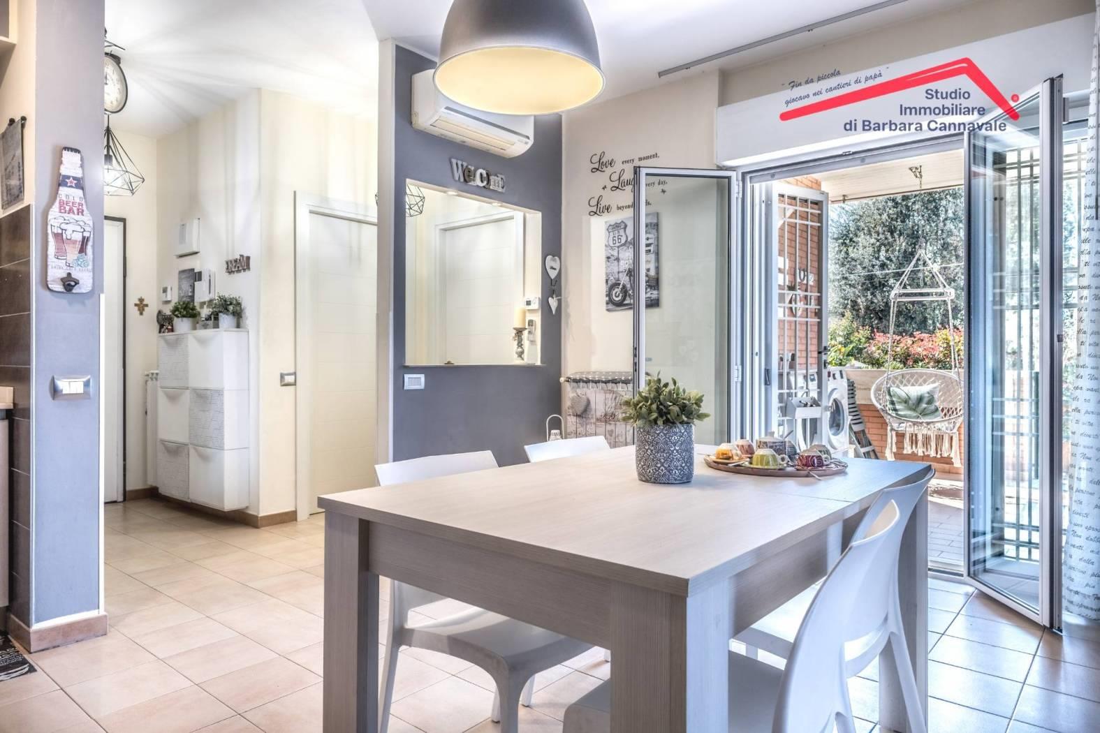 All' interno dell' esclusivo complesso residenziale Le Ville dei Cesari, proponiamo la vendita di un appartamento disposto su due livelli composto al piano rialzato da, soggiorno con cucina a vista, una camera da letto matrimoniale ed un bagno, completa il livello un ampia area esterna privata composta da un terrazzo ed un giardino di circa 200. Al piano S1 troviamo due camere da letto matrimoniali di cui una con un ampia cabina armadio attualmente adibita a studio, ed un secondo bagno. L'appartamento si presenta in perfette condizioni manutentive è dotato di impianto di aria condizionata, certificazione degli impianti, posto auto scoperto. L'immobile inoltre usufruisce di un ingresso condominiale ed uno indipendente direttamente dal giardino.