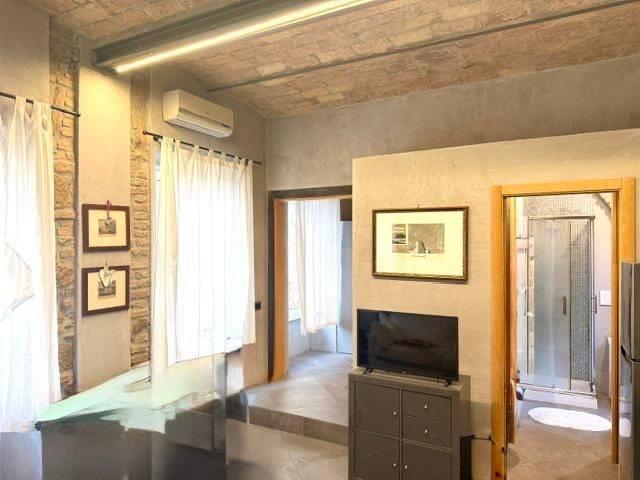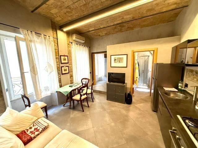 composto da: ingresso, con accesso indipendente che garantisce privacy, sito nel cuore di Roma, in un palazzo d’epoca umbertina con un importante androne affrescato, sul tetto bellissime rappresentazioni con affreschi in ottimo stato, silenzioso e riservato. L’ appartamento, ha un ingresso dalla corte interna del palazzo umbertino, tramite una comoda e ampia scala si accede al piano superiore, composto da un soggiorno con cucina open, una camera da letto e un bagno con doccia e finestra. I soffitti sono molto alti e con delle volte con mattoncini originali d’epoca (motivo ricorrente). Pavimenti color crema a grandi riquadri. Aria condizionata. Caldaia. infissi in PVC con doppio vetro, ottimo isolamento acustico e termico. Armadiature. L'immobile è disponibile da Marzo 2026.