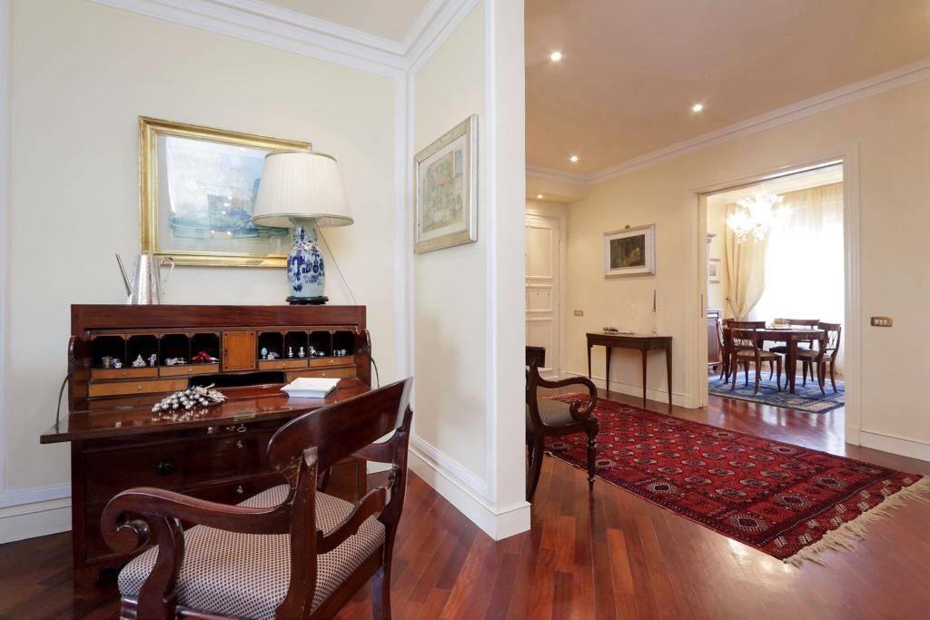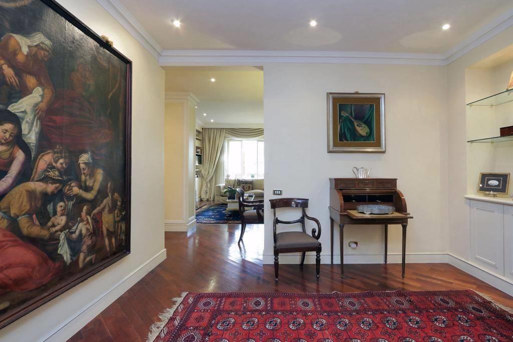 L'appartamento è così composto: Ingresso, doppio soggiorno di rappresentanza, cucina, 3 camere da letto e 3 bagni.