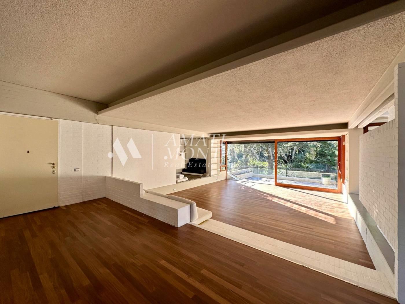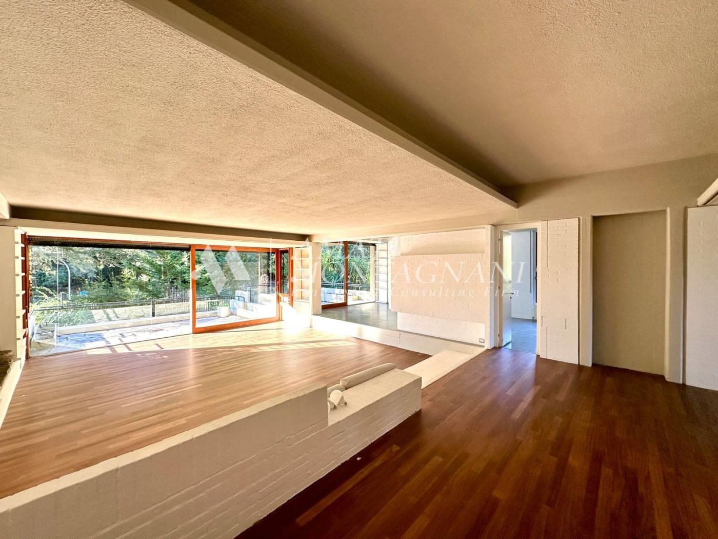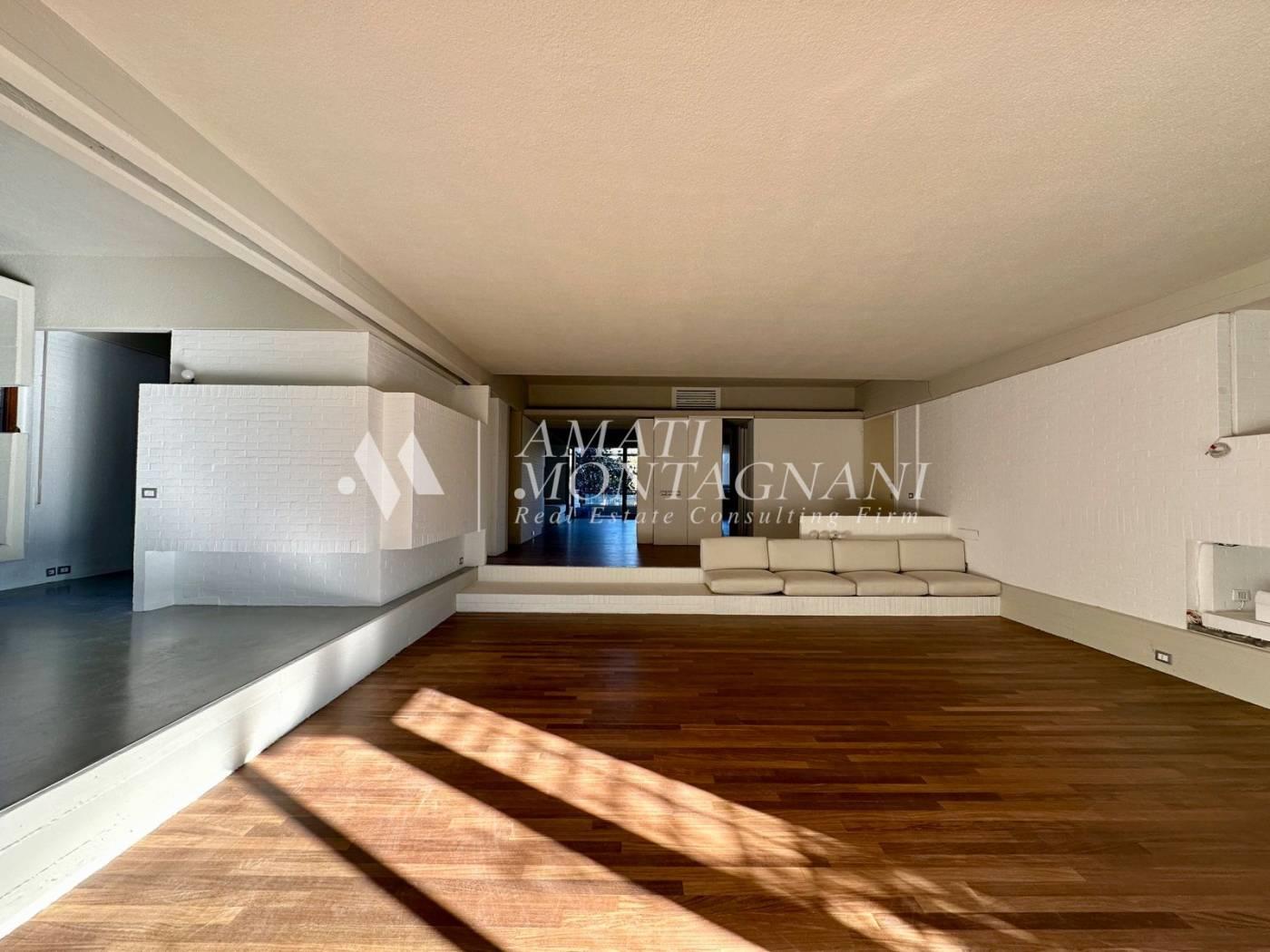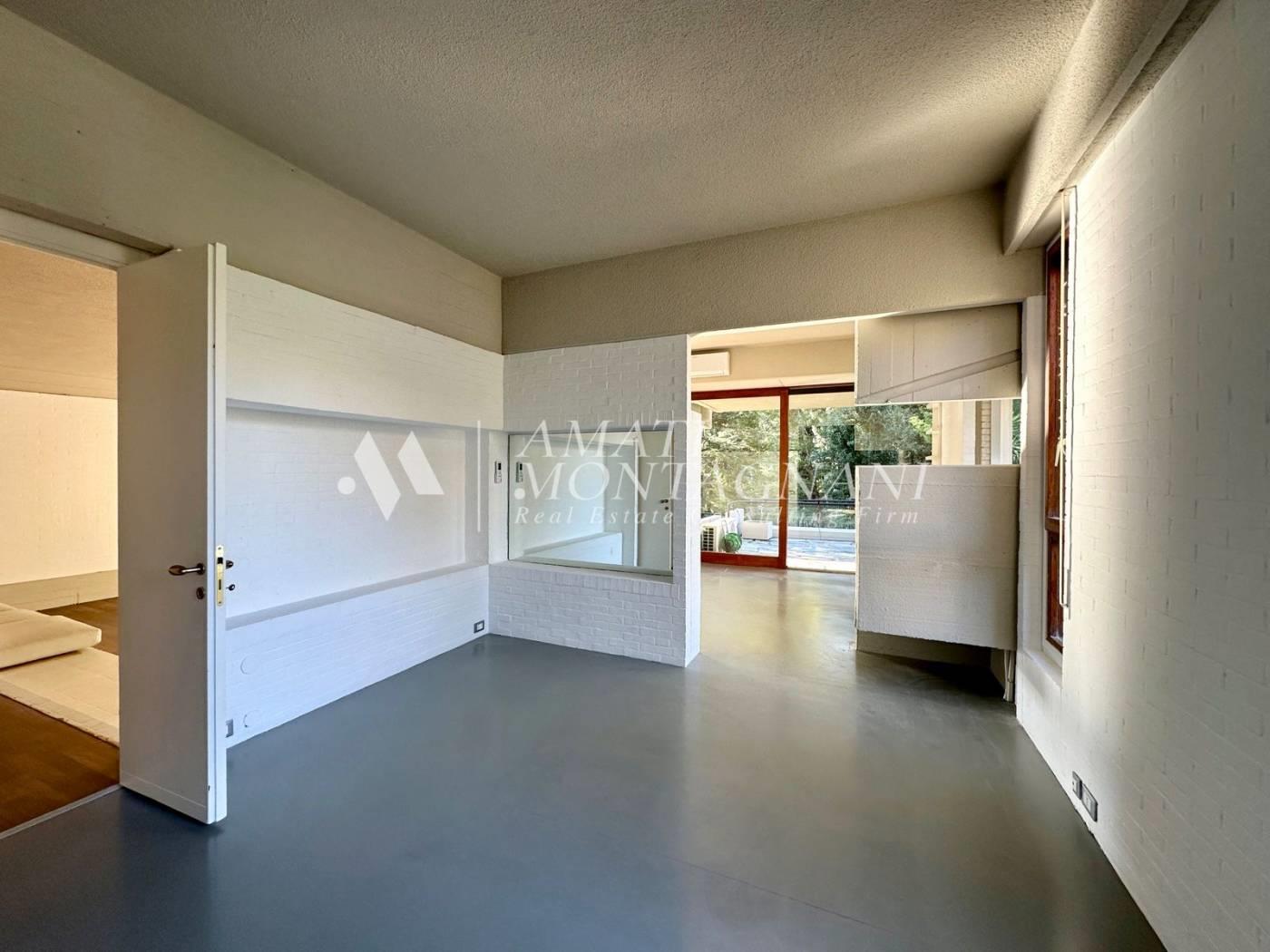 L'edificio, con una caratteristica architettura "Brutalista", offre uno stile unico e distintivo che si fonde armoniosamente con l'ambiente circostante. L'appartamento, con una superficie coperta di 205 metri quadrati, è distribuito in modo intelligente per offrire il massimo comfort e lusso.
