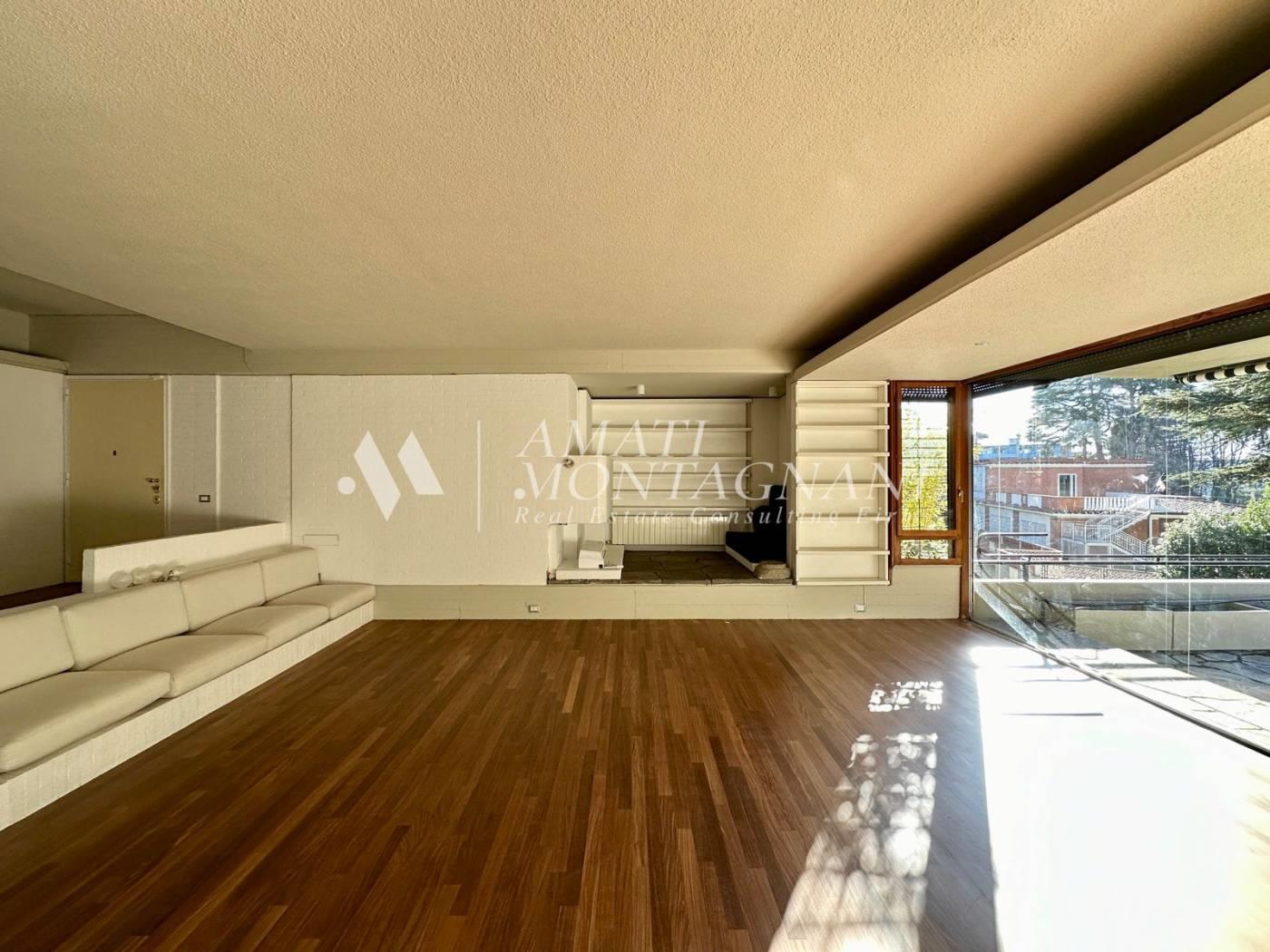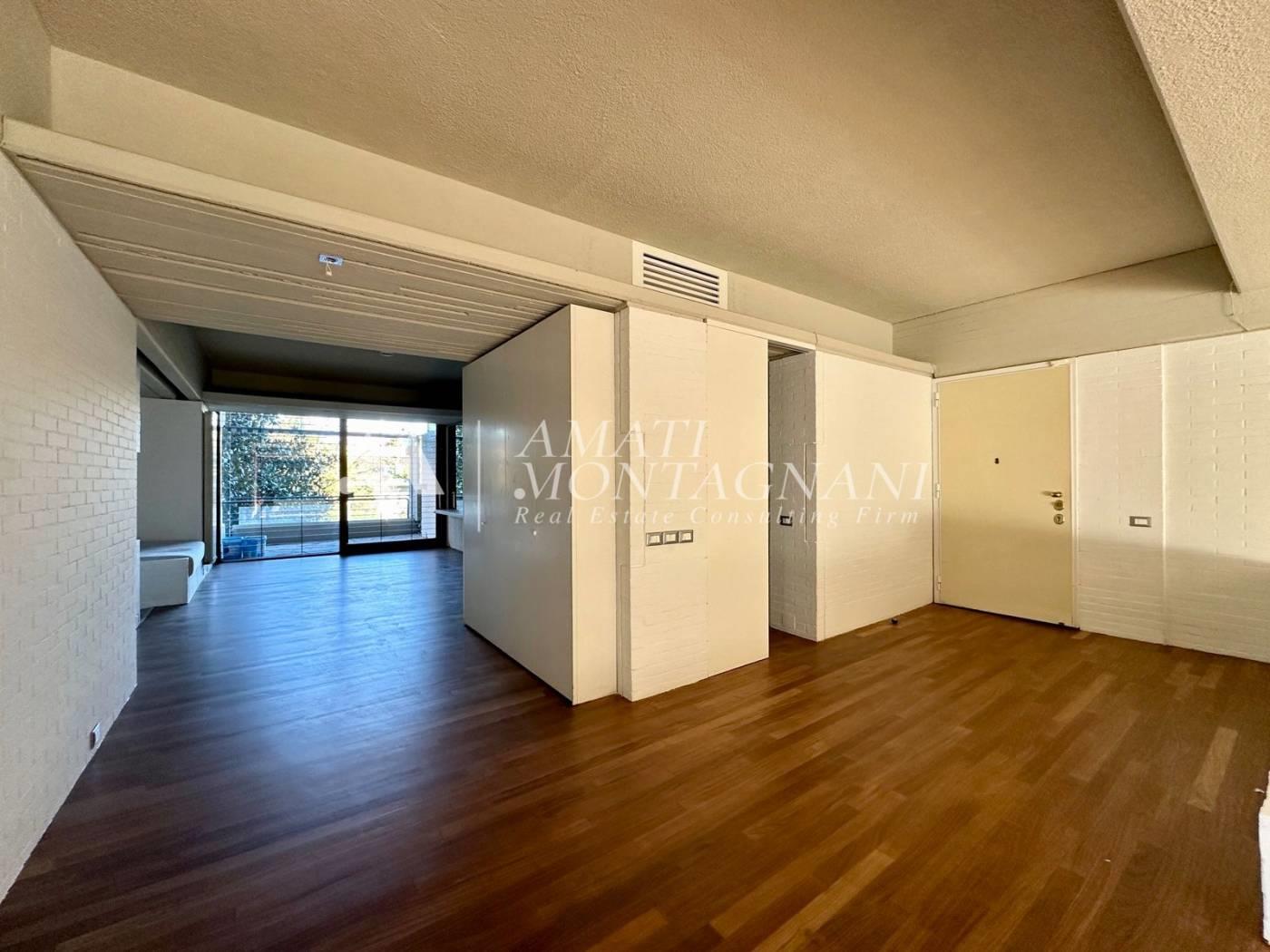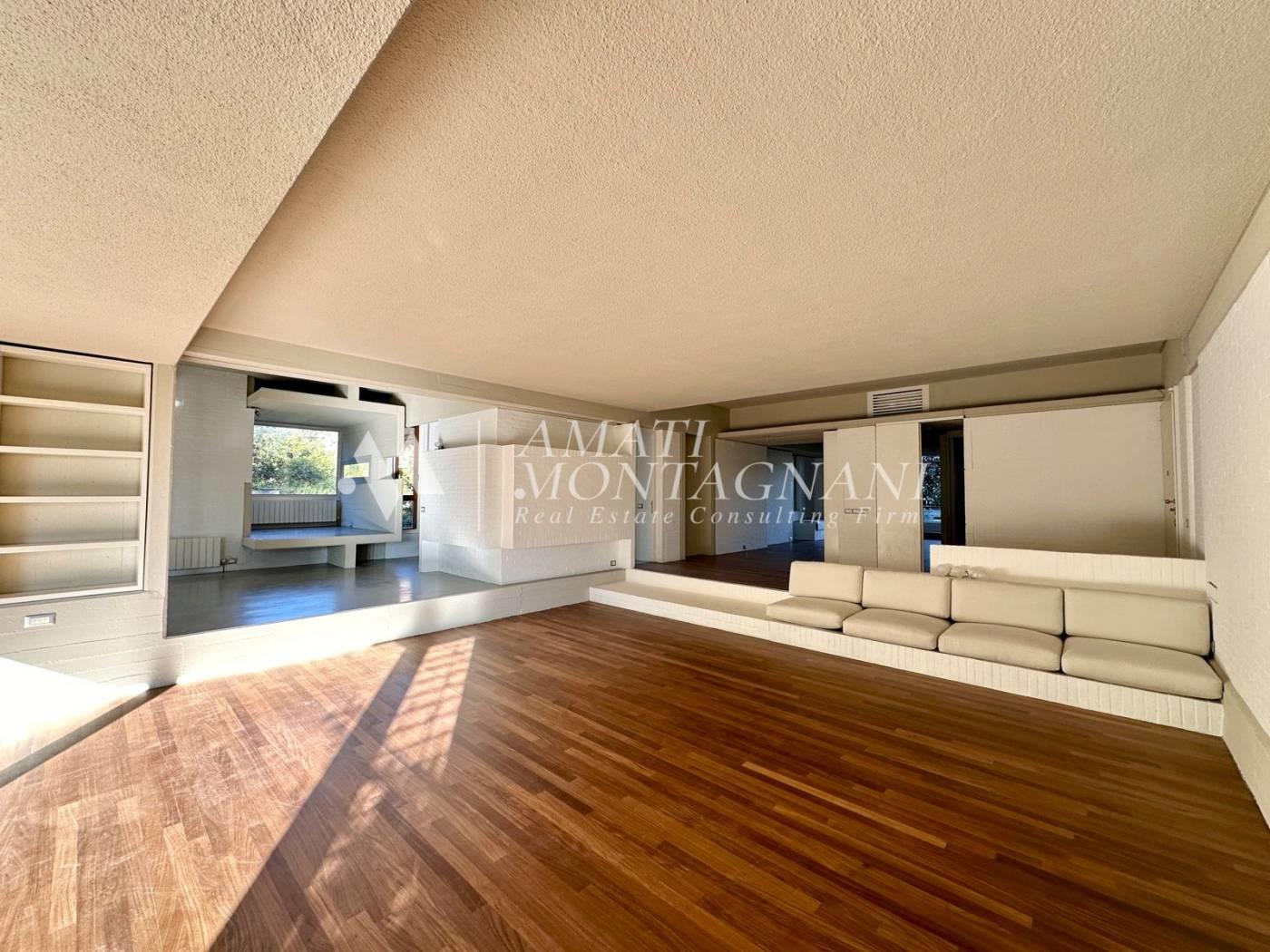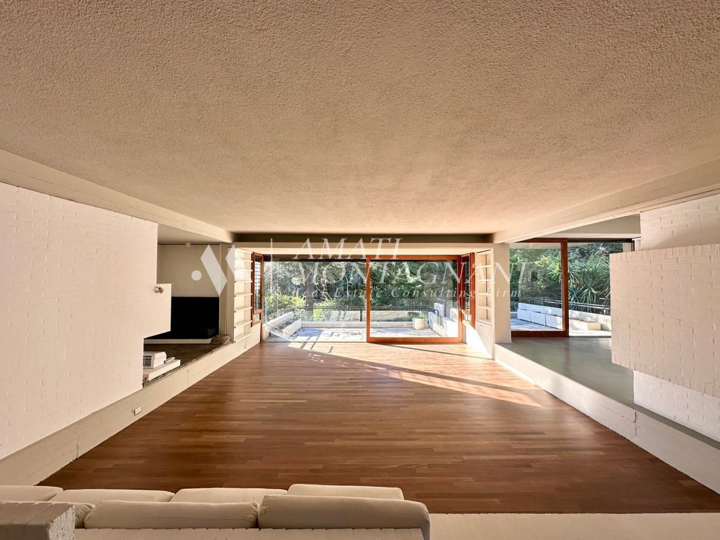 L'edificio, con una caratteristica architettura "Brutalista", offre uno stile unico e distintivo che si fonde armoniosamente con l'ambiente circostante. L'appartamento, con una superficie coperta di 205 metri quadrati, è distribuito in modo intelligente per offrire il massimo comfort e lusso.