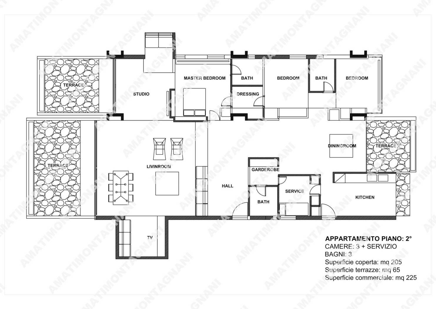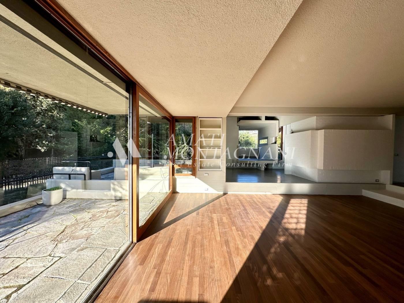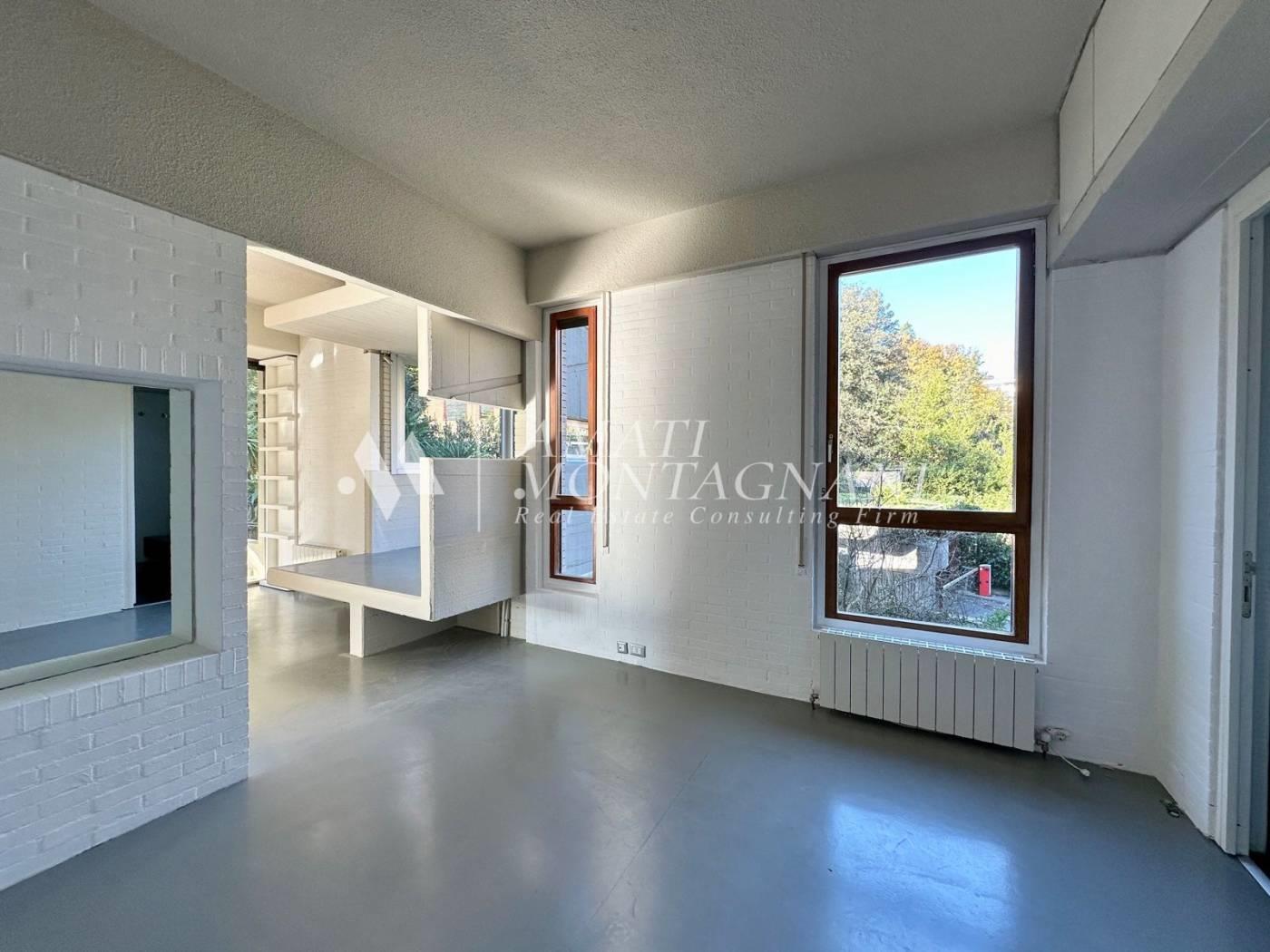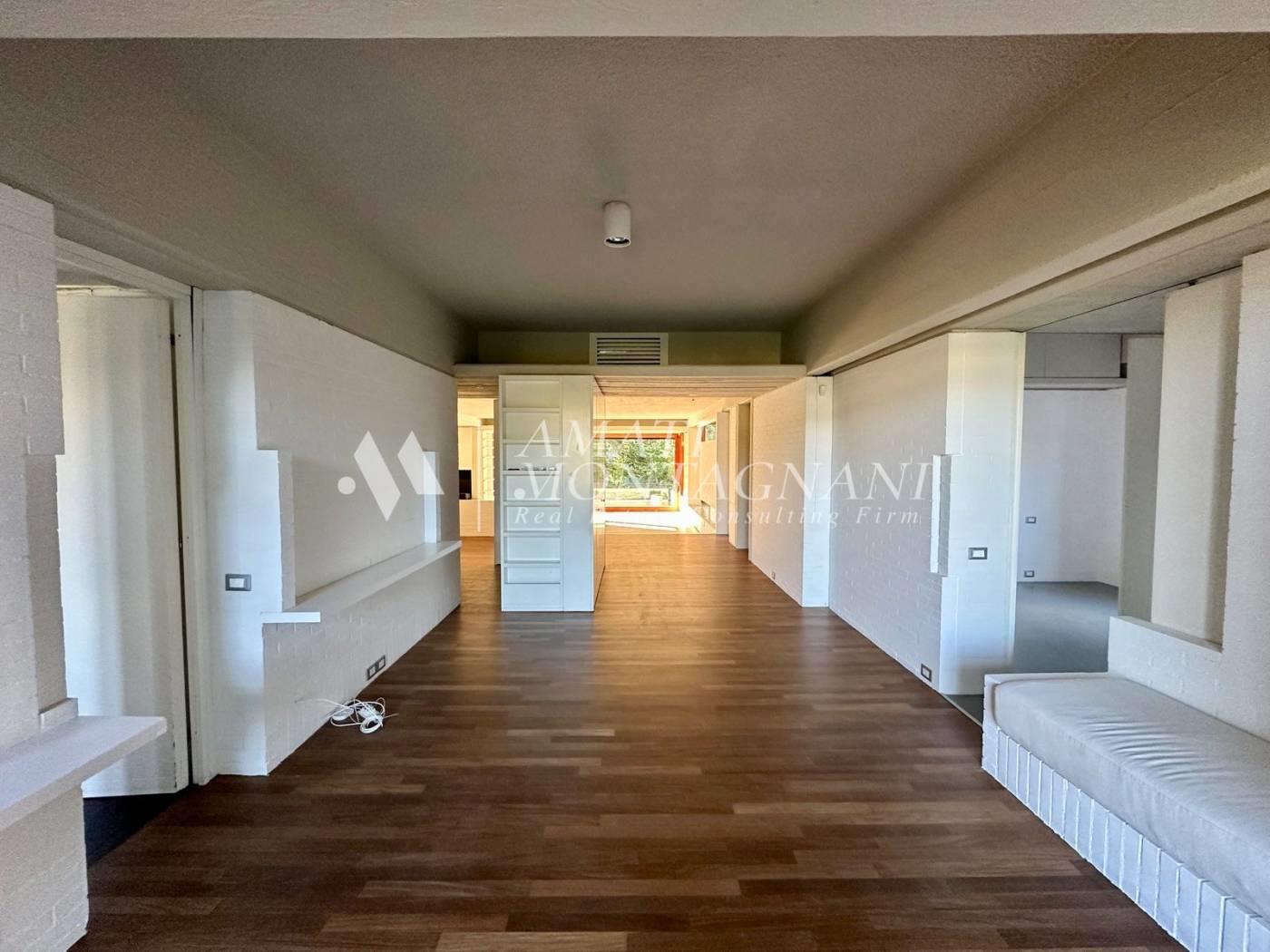 L'edificio, con una caratteristica architettura "Brutalista", offre uno stile unico e distintivo che si fonde armoniosamente con l'ambiente circostante. L'appartamento, con una superficie coperta di 205 metri quadrati, è distribuito in modo intelligente per offrire il massimo comfort e lusso.