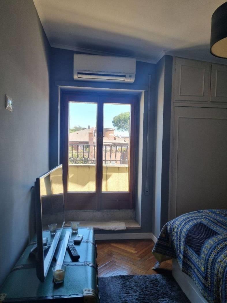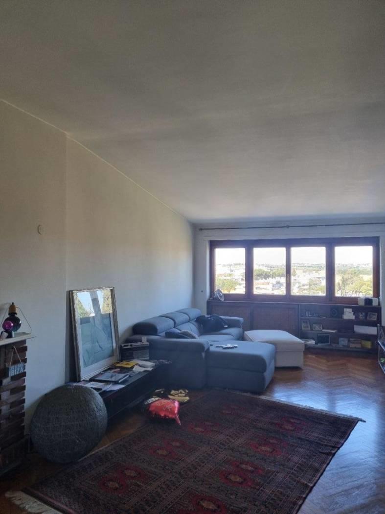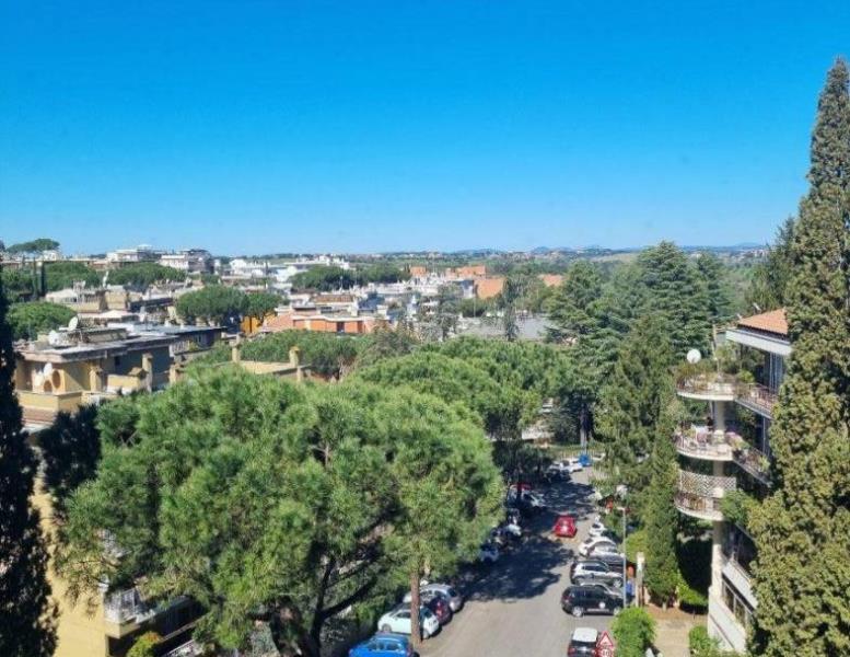 Via Cortina d'Ampezzo ad. Via Vallombrosa, in stabile elegante ben tenuto, luminoso 5 ed ultimo piano di circa 75 mq, con affacci su più lati, attualmente composto da ingresso, soggiorno pranzo con parete attezzata, due camere e un bagno. Balconcino, posto auto in garage condominiale e cantina al piano seminterrato. Ricaldamento centralizzato a consumo. Ascensore fino 4 piano.--LOCATO FINO 2026--