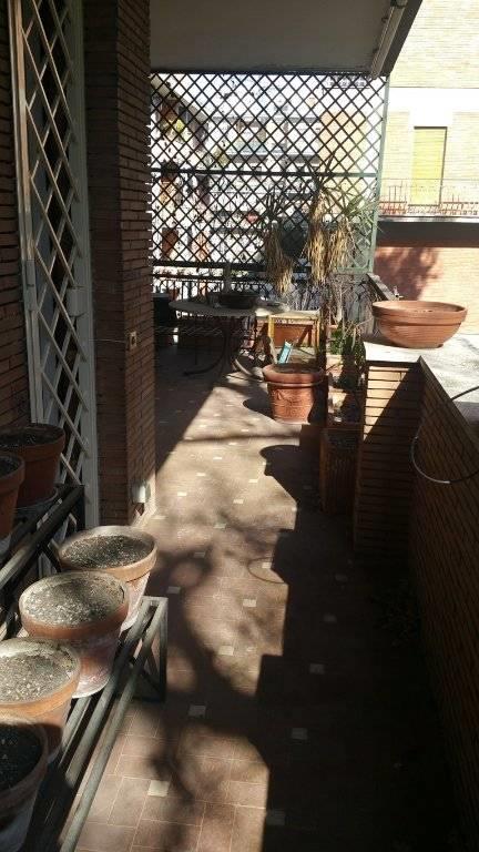 L’immobile è composto da: ampio ingresso, corridoio con armadi a muro, salone con accesso a terrazzo vivibile, cucina con balcone e adiacente tinello (eventualmente utilizzabile come terza camera), due camere da letto, di cui una con terrazzo, doppi servizi, aria condizionata. Completano la proprietà posto auto condominiale a rotazione, cantina e ampi spazi verdi condominiali.