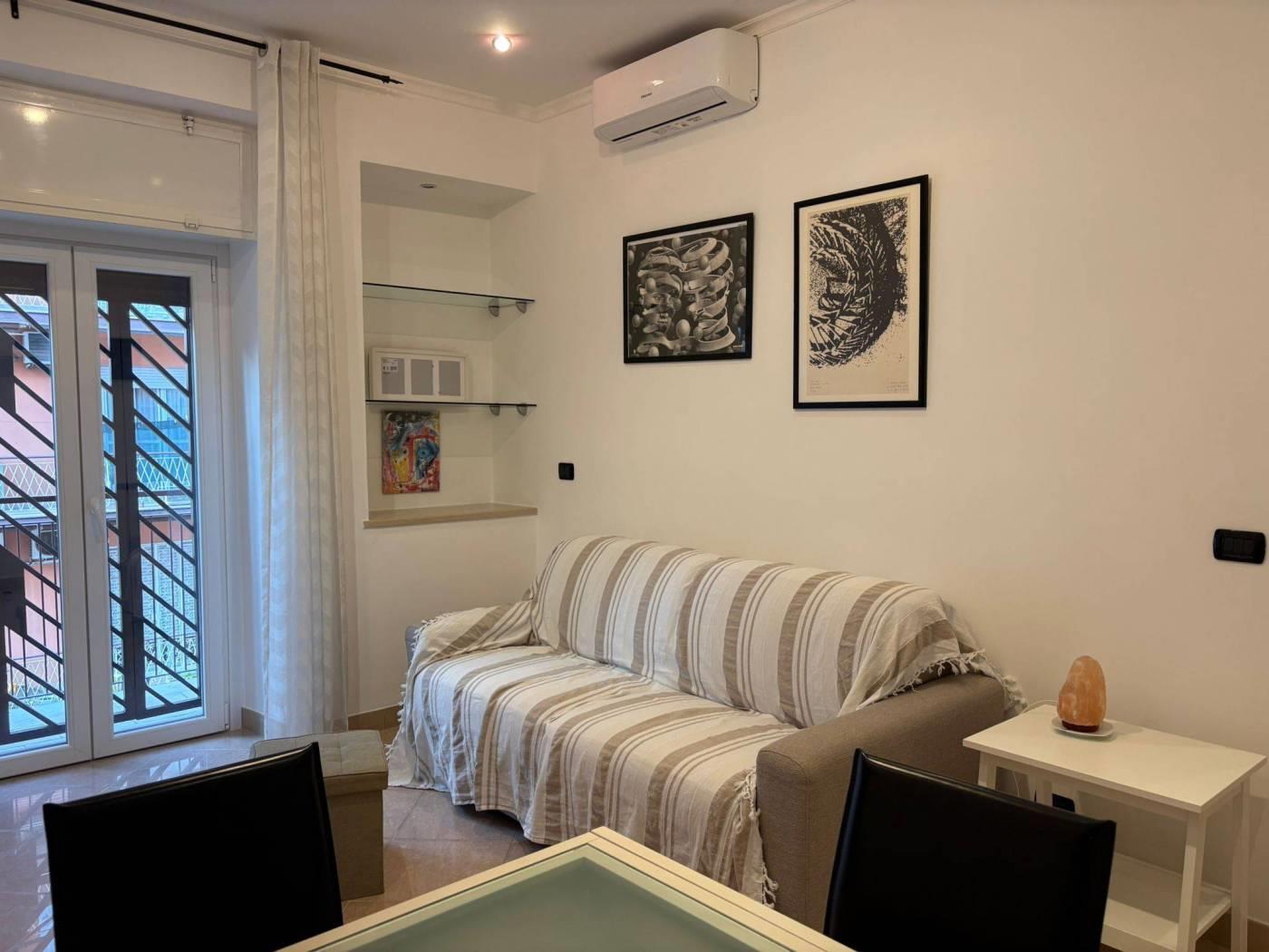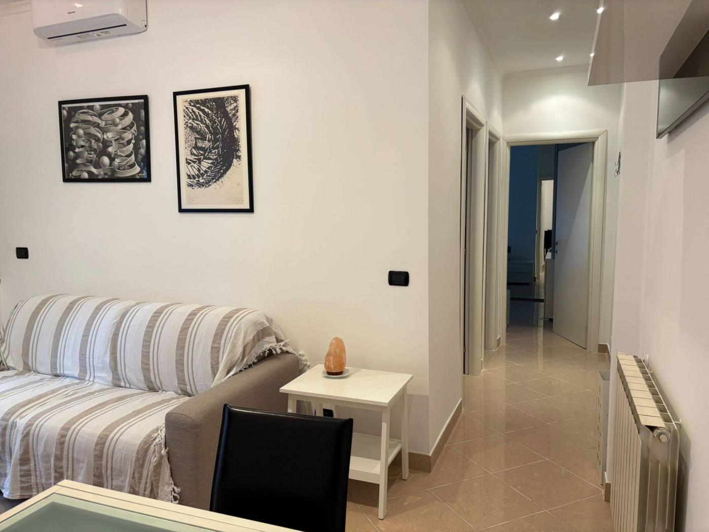 L’immobile si presenta completamente ristrutturato e rifinito con: pavimentazione in marmo, infissi in doppivetri/pvc con grate di sicurezza, controsoffitto con faretti, cucina completamente attrezzata, videocitofono, condizionatori e porta blindata. Il riscaldamento è termoautonomo. Classe energetica G.
