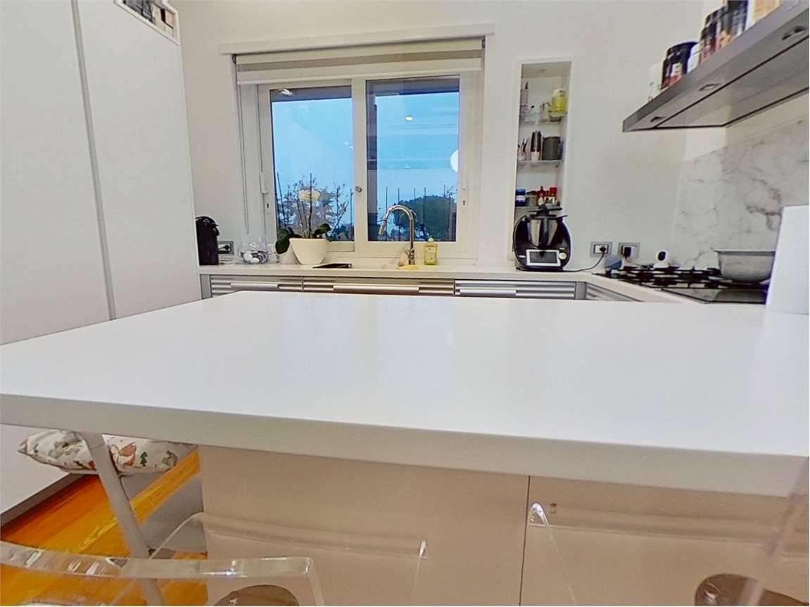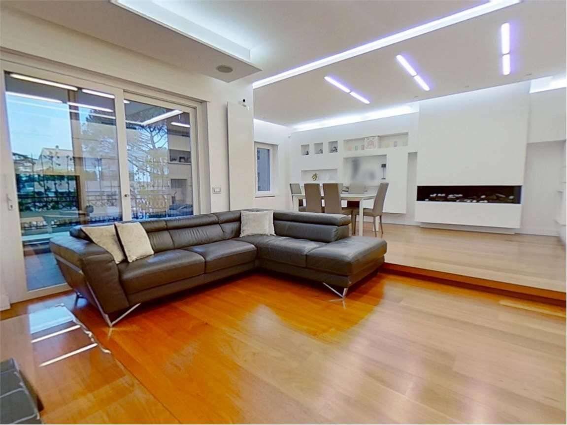 Posto al terzo piano è composto da ampio ingresso, salone doppio con camino, cucina abitabile, camera da pranzo, camera da letto padronale con bagno privato, due comode camere singole, ulteriore bagno nella zona notte dotato di vasca, bagno ospiti nella zona giorno, armadi a muro e due terrazzi a livello.