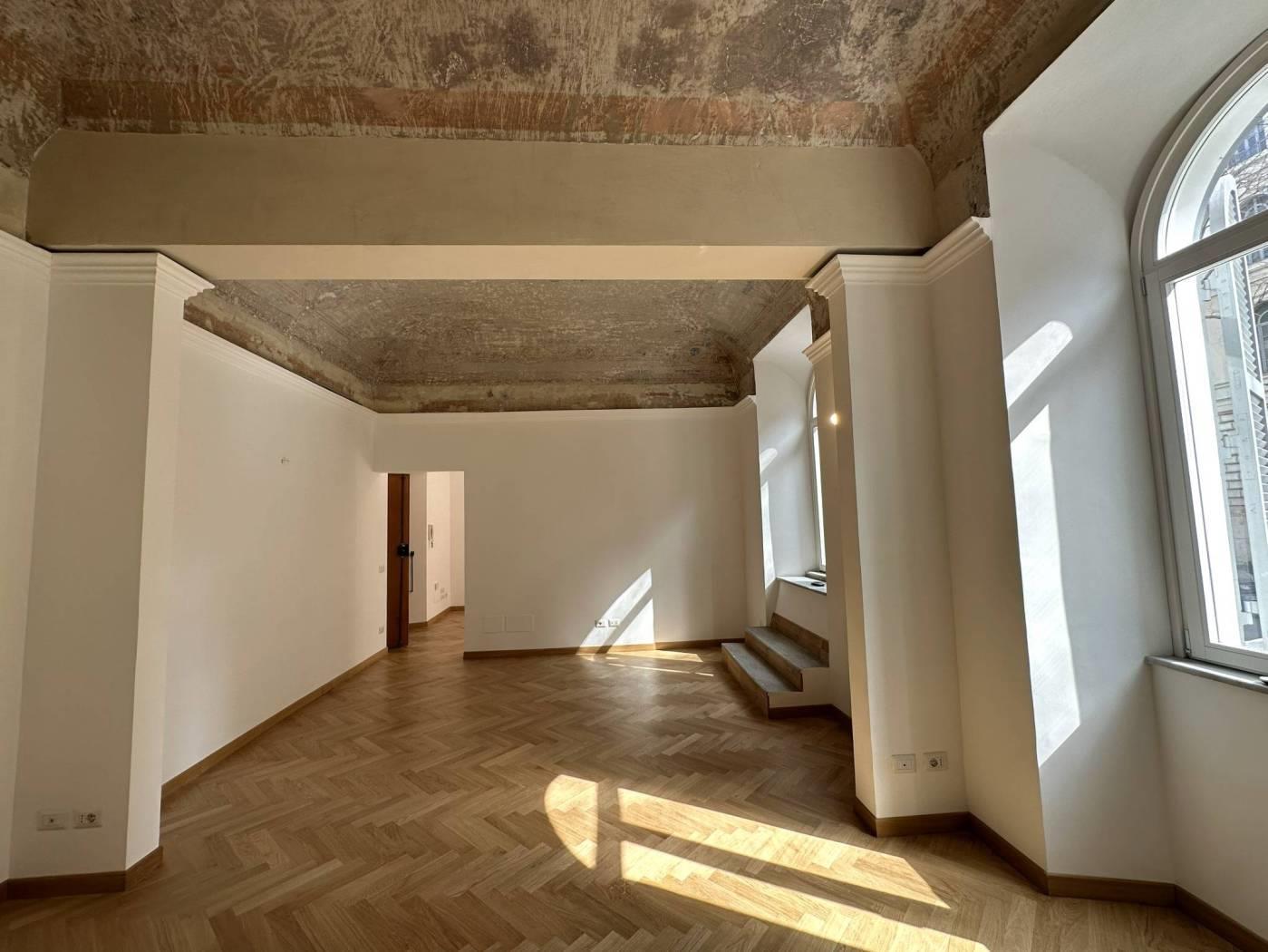 L'immobile è composto da ingresso, soggiorno con angolo cottura, camera da letto e bagno; è caratterizzato da alti soffitti affrescati, parquet in entrambe le camere, infissi doppio vetro legno con insonorizzazione acustica.