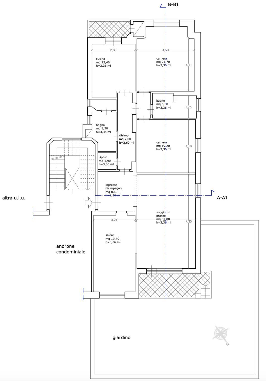 L’appartamento, DISPONIBILE SOLO PER PERSONALE DIPLOMATICO, si sviluppa su una pianta ben razionalizzata, dove la distribuzione interna riflette un equilibrio funzionale tra la zona giorno e quella notte. L’ingresso si apre su un ambiente living di ampio respiro, costituito da un soggiorno–pranzo che si affaccia direttamente sull’esclusivo terrazzo–giardino: un duplice livello esterno collega il balcone al primo livello con due ampie terrazze giardino poste alla quota di pian terreno, creando una continuità visiva e funzionale tra interno ed esterno.