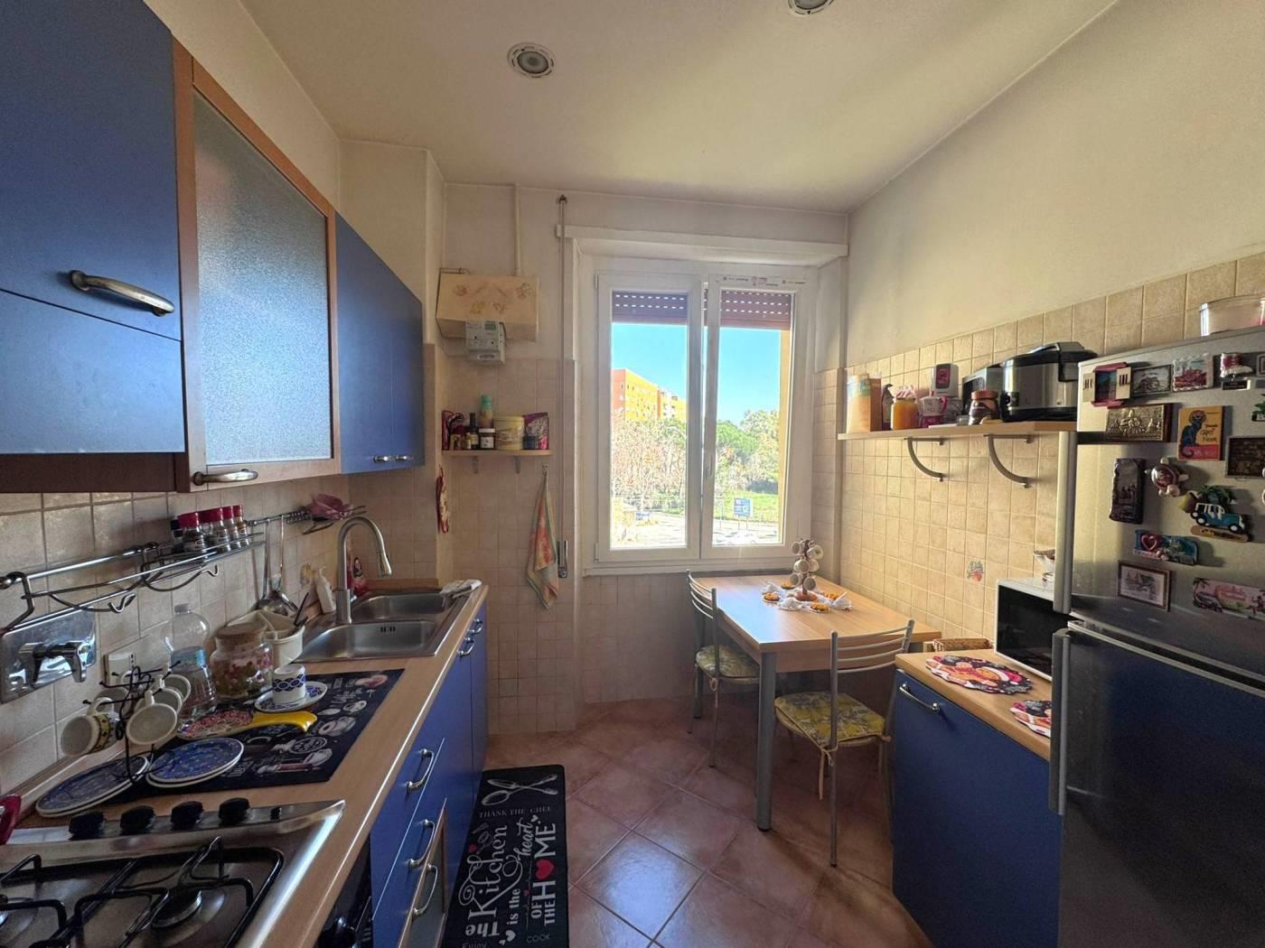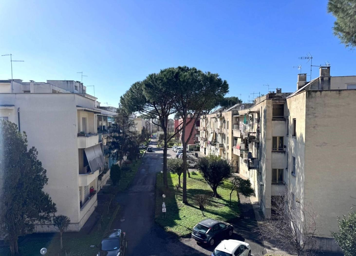 L’affaccio è interno verso i giardini condominiali, caratteristica che rende l’immobile silenzioso.
