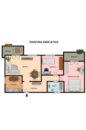 Internamente si compone di un ingresso, corridoio, salone di circa 23 mq, due camere (una di 16 mq e l’altra di 12 mq circa), cucina, bagno e due balconi abitabili.