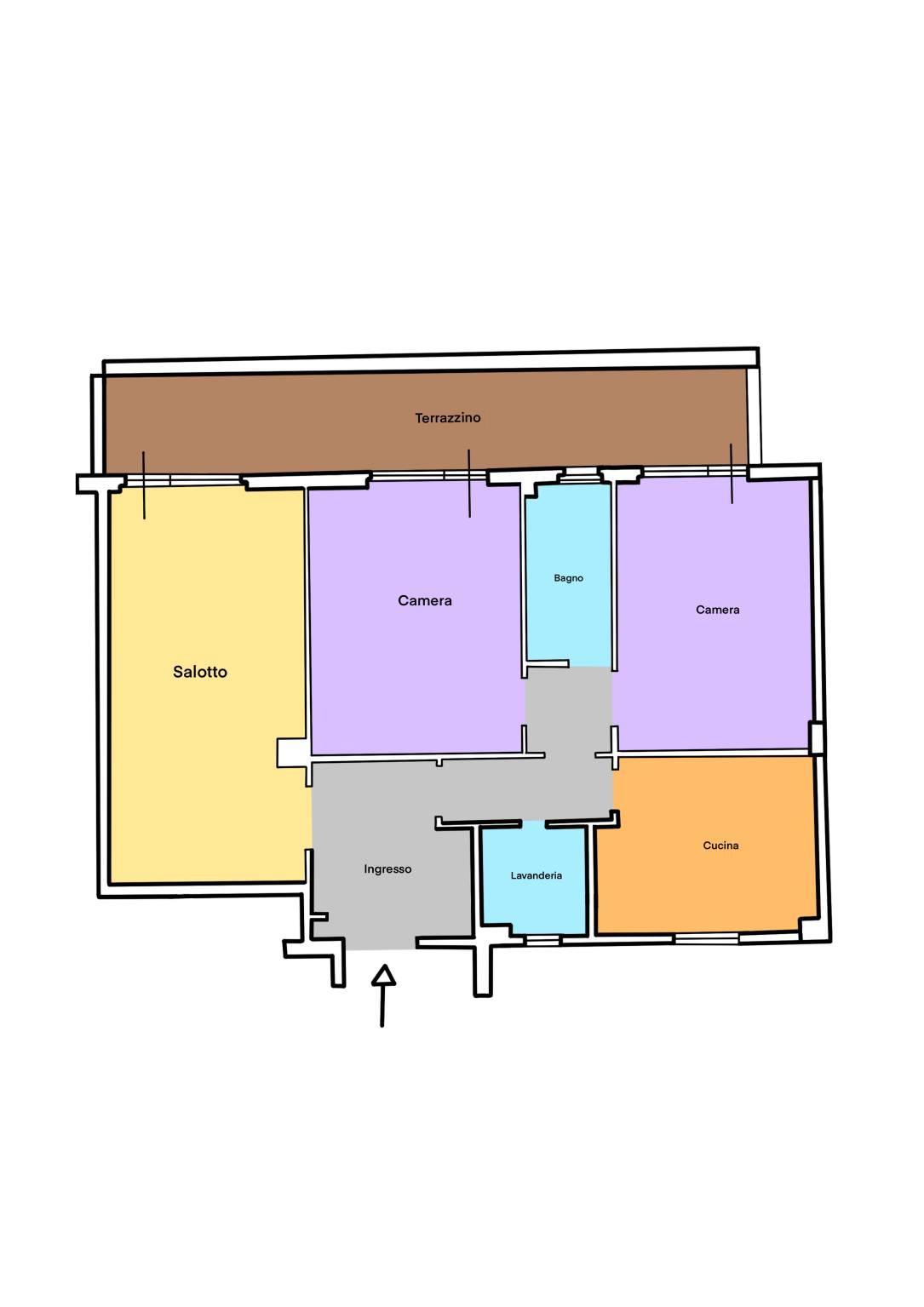 L'immobile è composto da un ampio ingresso, salone, cucina abitabile, due ampie camere da letto, bagno, locale lavanderia e un terrazzino di circa 20 mq.