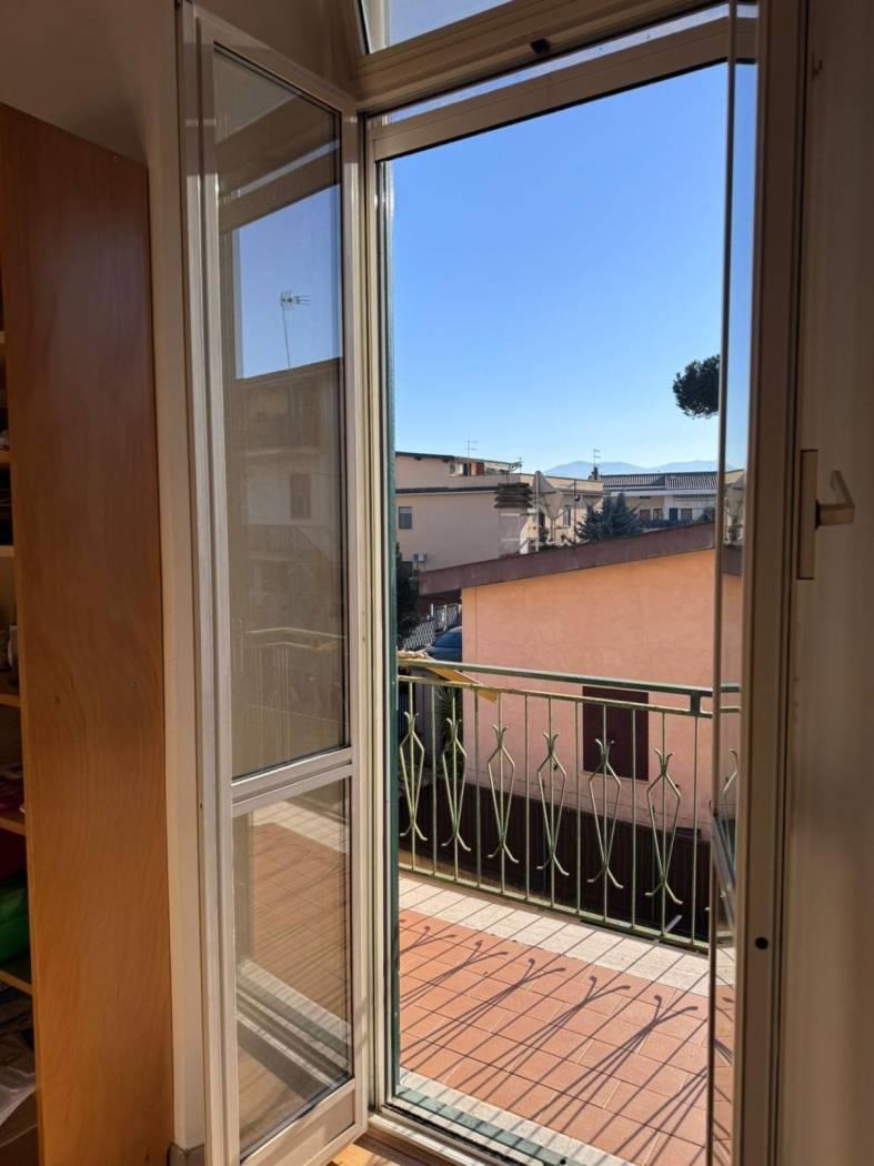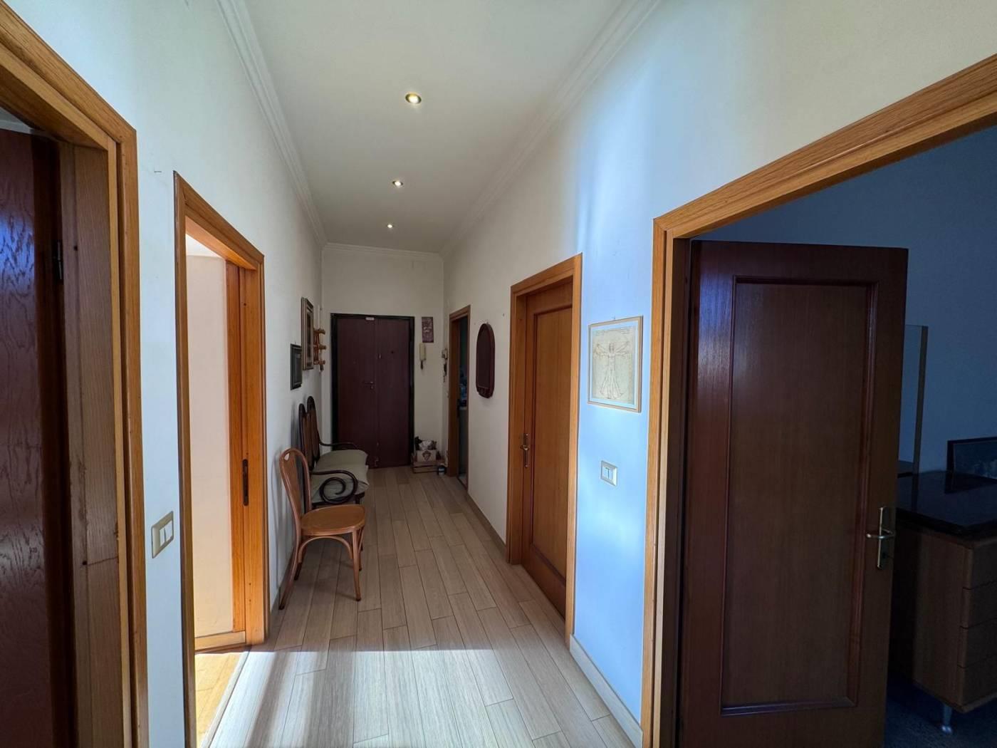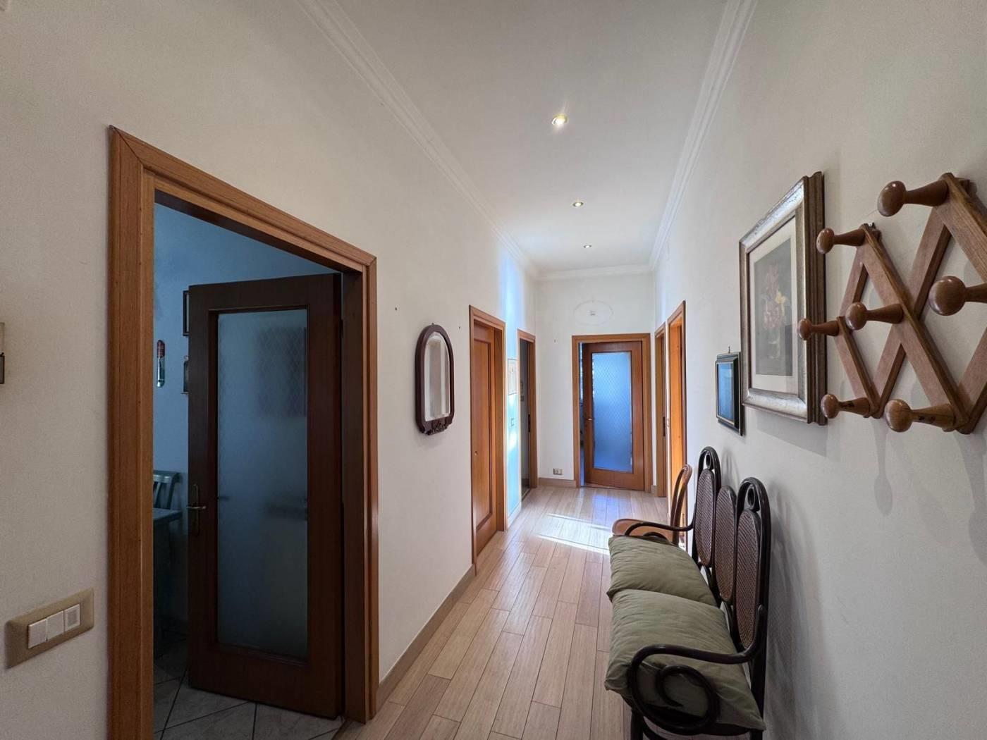 Internamente si compone di un ingresso/corridoio, salone con 2 finestre, due camere matrimoniali, cucina abitabile, ampio ripostiglio, 2 bagni (uno senza finestra), ed un balcone. Lo stato di manutenzione interno è buono, infatti l’immobile è da subito abitabile; tra i lavori effettuati dalla proprietà nel corso degli anni, abbiamo infissi in alluminio con doppio vetro, persiane in pvc, porte in legno, impianto elettrico con corrugati, impianto idraulico rifatto ad inizio degli anni 2000, porta blindata con cilindro europeo.