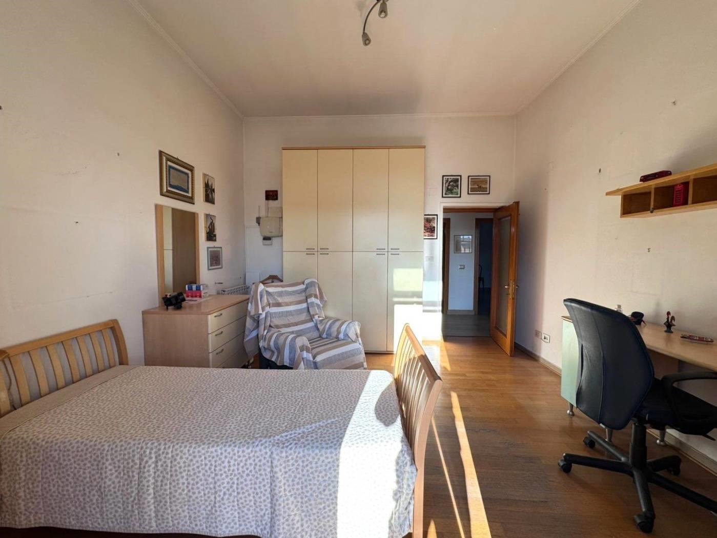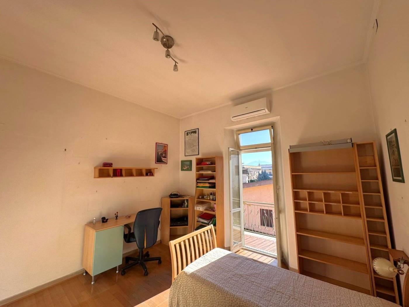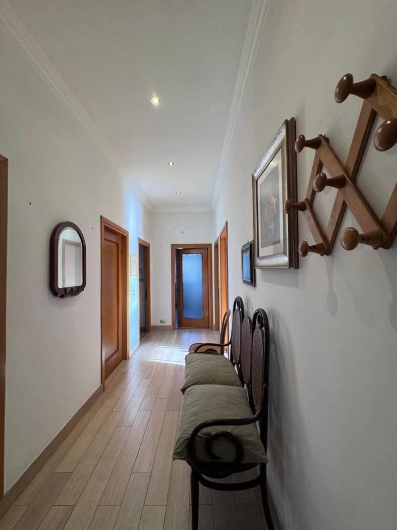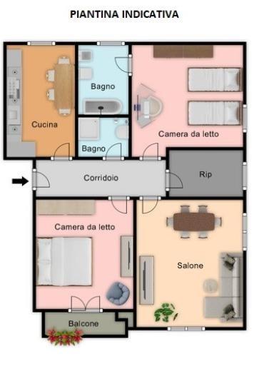 Internamente si compone di un ingresso/corridoio, salone con 2 finestre, due camere matrimoniali, cucina abitabile, ampio ripostiglio, 2 bagni (uno senza finestra), ed un balcone. Lo stato di manutenzione interno è buono, infatti l’immobile è da subito abitabile; tra i lavori effettuati dalla proprietà nel corso degli anni, abbiamo infissi in alluminio con doppio vetro, persiane in pvc, porte in legno, impianto elettrico con corrugati, impianto idraulico rifatto ad inizio degli anni 2000, porta blindata con cilindro europeo.