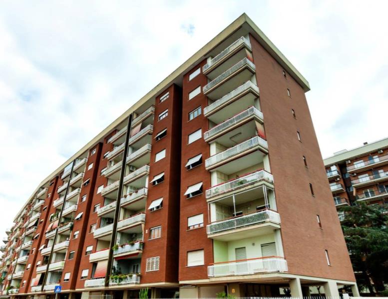 Appartamento trilocale piano secondo con ascensore, palazzina in cortina con servizio di portineria, composto da: ampio ingresso, salone, due ampie camere, cucina abitabile, doppi servizi, armadio a muro, ampio terrazzo, doppia esposizione. Termoautonomo. Climatizzato.