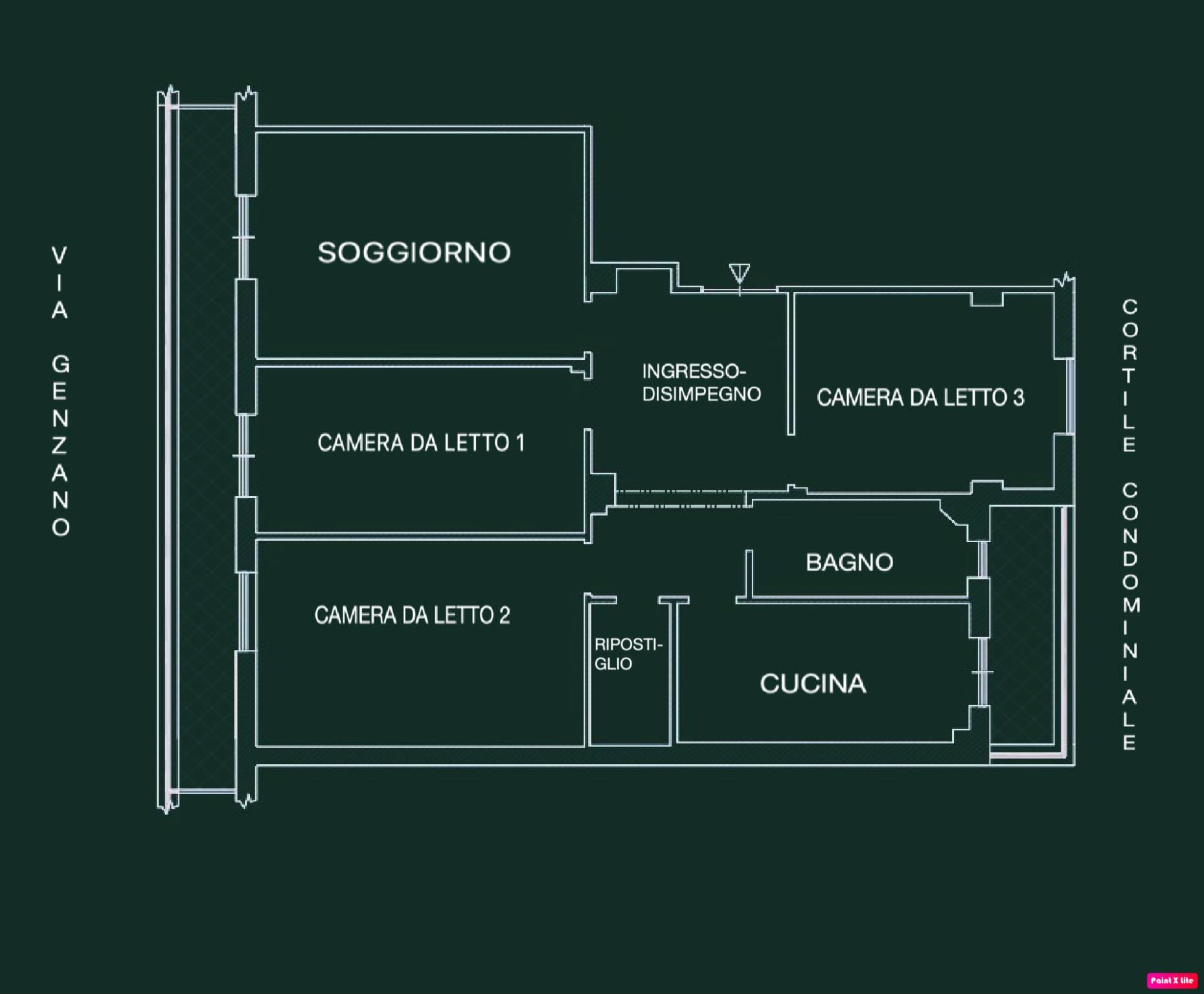 Attualmente l'immobile è composto da ampio ingresso/disimpegno, tre camere da letto, un soggiorno, una cucina abitabile, un comodo bagno, un ripostiglio e due balconi a livello, uno dei quali affaccia su Via Genzano godendo di una discreta luminosità durante l’arco della giornata in quanto orientata verso sud.