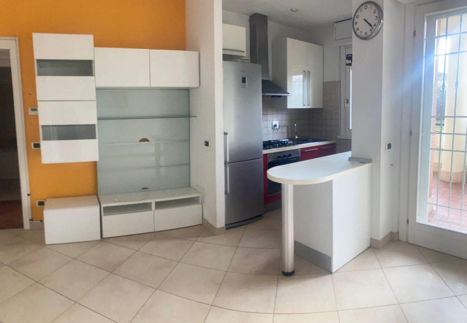 Al piano primo - con grande terrazza di 20 mq, coperta e affacciata sul oarco - l'appartamento sviluppa 47 mq coperti catastali e presenta un ingresso su soggiorno - cucina a vista, completamente arredata e funzionale - ampia camera da letto matrimoniale - armadiatura a muro e bagno con aerazione forzata. Centrale termica sul balcone/terrazza. Massima riservatezza in ragione di affacci panoramici sul verde.