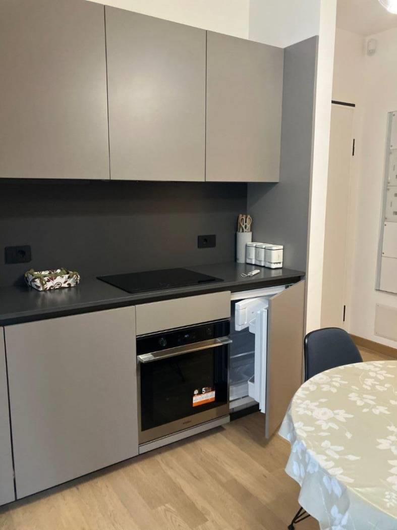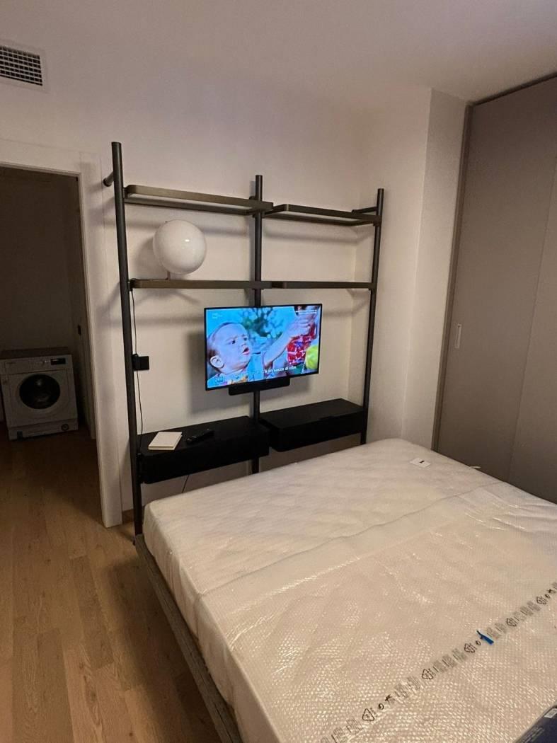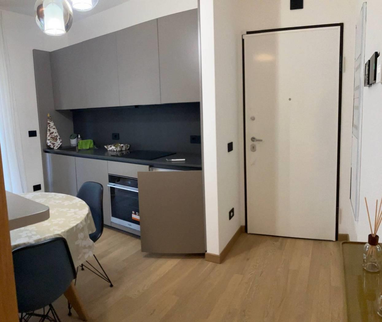 Open space finemente arredato con cucina a vista, zona letto, armadiatura, ripostiglio /office/lavanderia, ampia terrazza al piano arredata in uso di patio