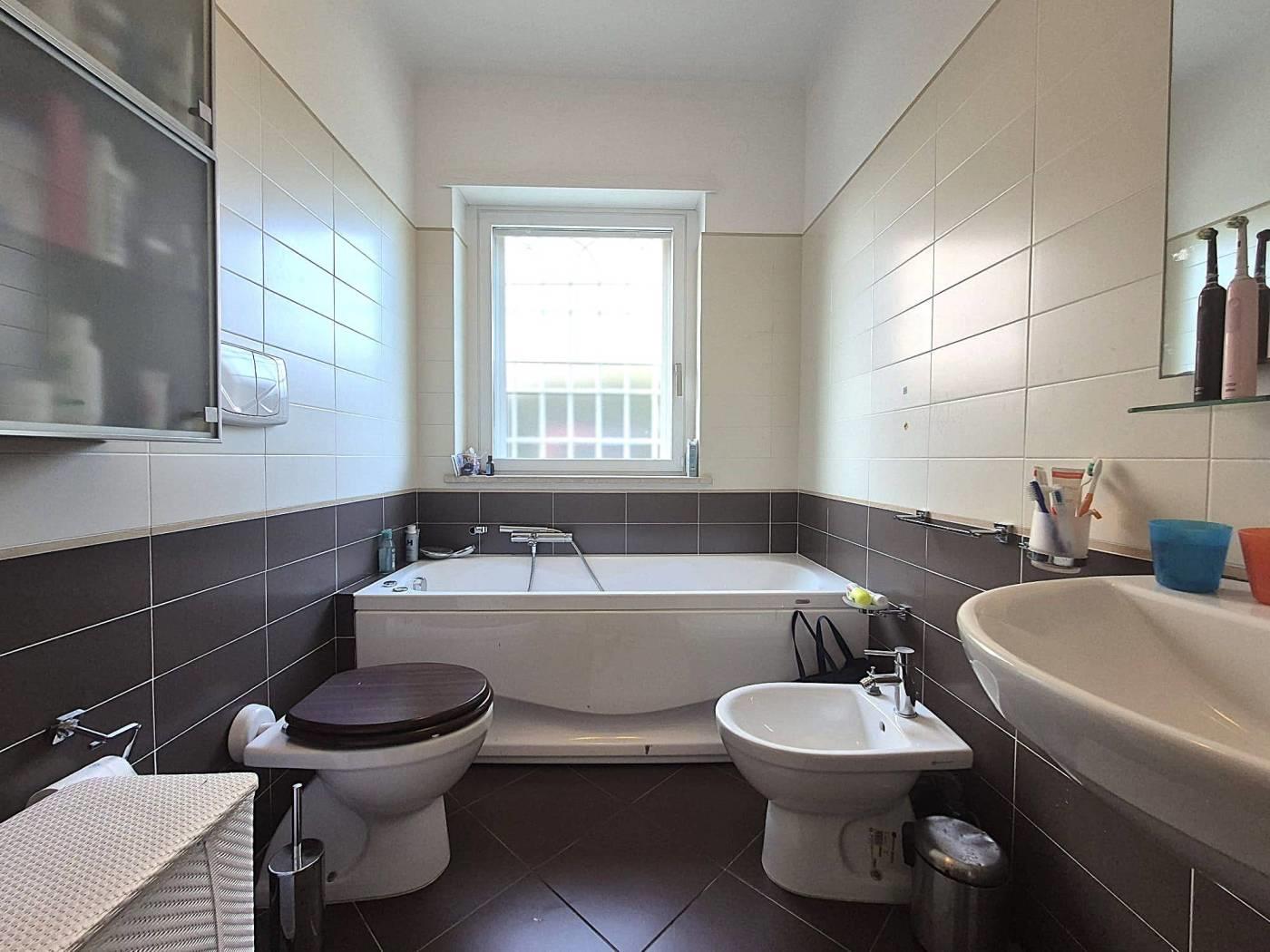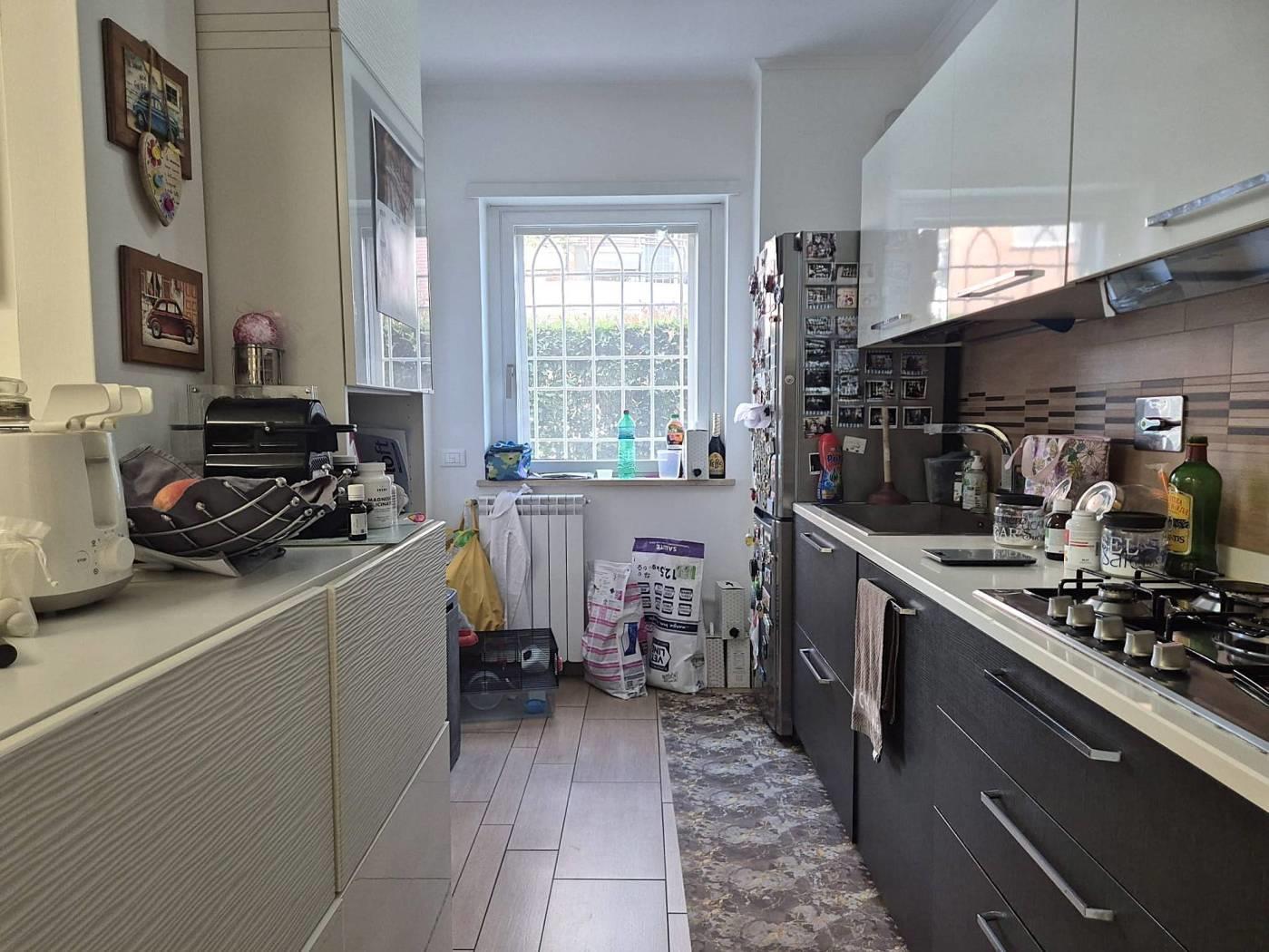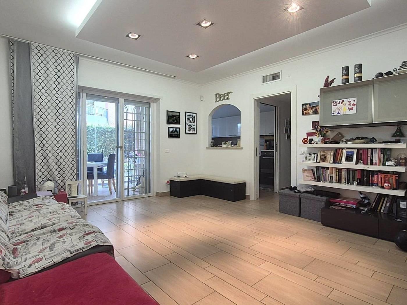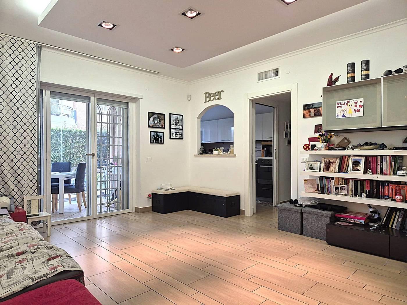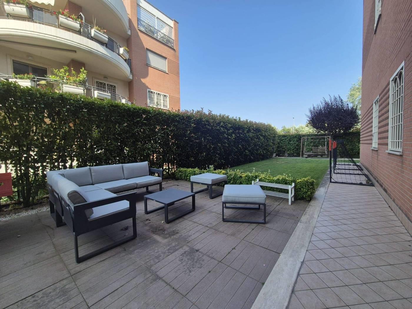All'interno di un Contesto Residenziale Riservato e Tranquillo, Circondato da Giardini ben Curati ed Area Verde per bambini, Proponiamo la Vendita di un interessantissimo Appartamento in ottime Condizioni di Manutenzione posto al Piano Terra di una Palazzina in cortina di soli 4 piani con Esclusivo Giardino perimetrale(mq 250circa)così suddiviso: Soggiorno a vista, Cucina Semi-Abitabile, Due(2) Camere Matrimoniali, Doppi Servizi con finestra, comoda Lavanderia esterna Cantina, Box Auto mq 18(con ascensore che porta direttamente alla zona garage) Videocitofono, Termoautonomo. No Barriere architettoniche. Note: La Proprietà ha ottimizzato gli spazi esterni creando un ulteriore ambiente applicando una Vetrata Scorrevole che divide un ampio Patio dal Giardino Perimetrale. Ubicato a poca distanza dai maggiori servizi Urbani e Commerciali di prima necessità(VEDERE GOOGLE MAPS).