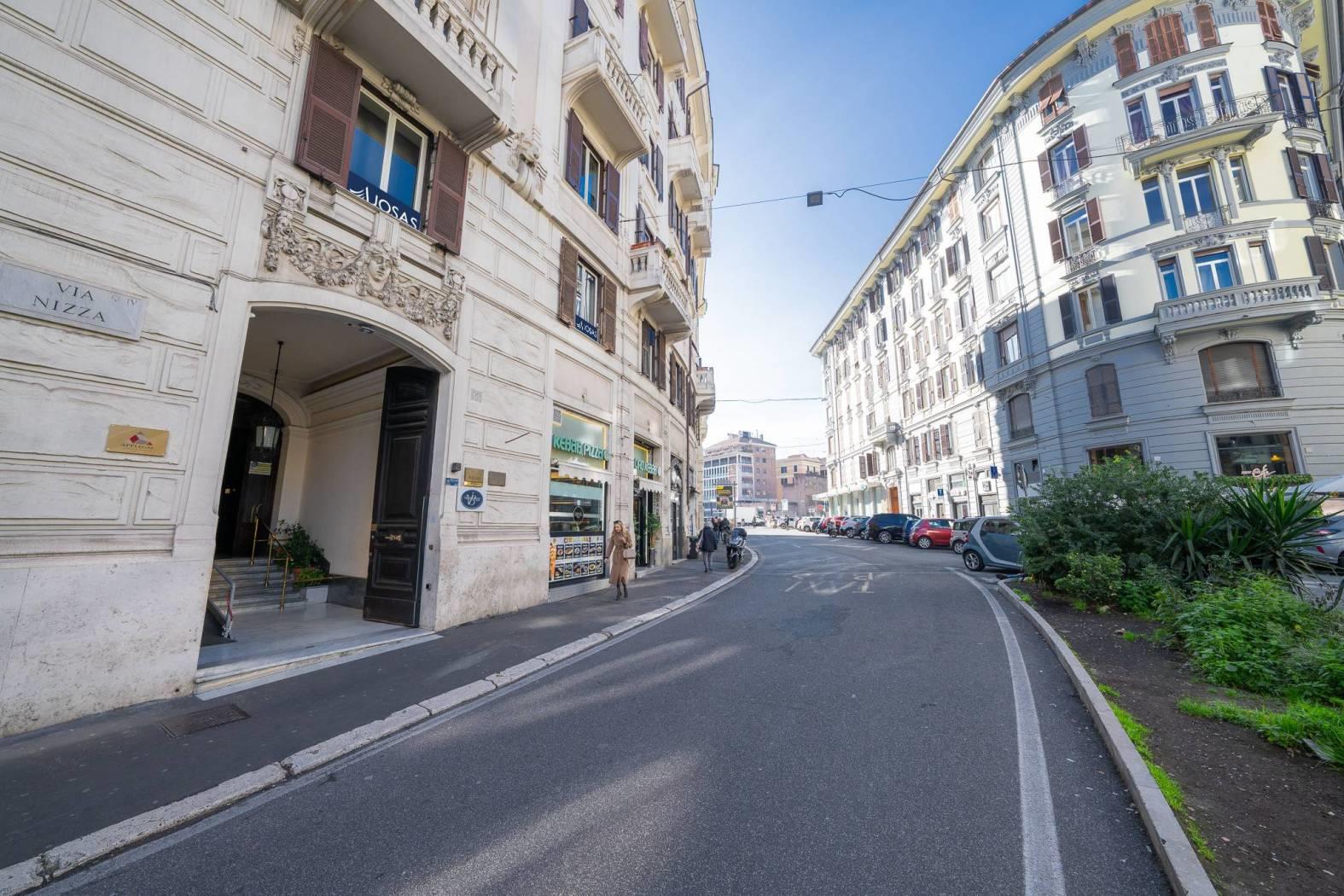 La Josas immobiliare propone in locazione l'immobile sito su Via Nizza n. 22. Il quartiere Nomentano–Salario, è una strada residenziale elegante e vissuta, dove si respira una Roma quotidiana e autentica. Prevalgono palazzi signorili dei primi del Novecento, con cortili interni e affacci tranquilli, che rendono la zona adatta a chi cerca quiete senza rinunciare ai servizi. La presenza di alberi, scuole, piccoli negozi e caffè di quartiere contribuisce a un’atmosfera ordinata e familiare. Ben collegata dai mezzi pubblici e vicina a spazi verdi come Villa Torlonia, Via Nizza offre un buon equilibrio tra vita di quartiere e comodità urbana. L'immobile attualmente è adibito ad uso ufficio con possibilità di cambio di destinazione ad uso ricettivo o abitativo. È composto da otto camere, due bagni, una cucina, L'immobile è provvisto di ascensore e servizio di portineria, il canone richiesto annuo è di 84.000 €.