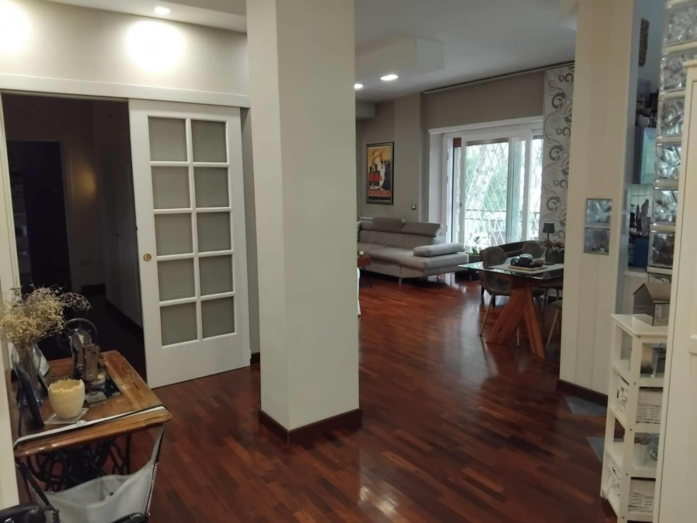 L'immobile si presenta in ottime condizioni interne, essendo stato oggetto di recente ristrutturazione con materiali di pregio (parquet, porte "garofoli", serrande elettriche, grate di sicurezza, zanzariere), pressoché totale e l'ampia metratura e i grandi spazi esterni rendono questo appartamento molto versatile, adatto a nuclei familiari con bambini e animali domestici.