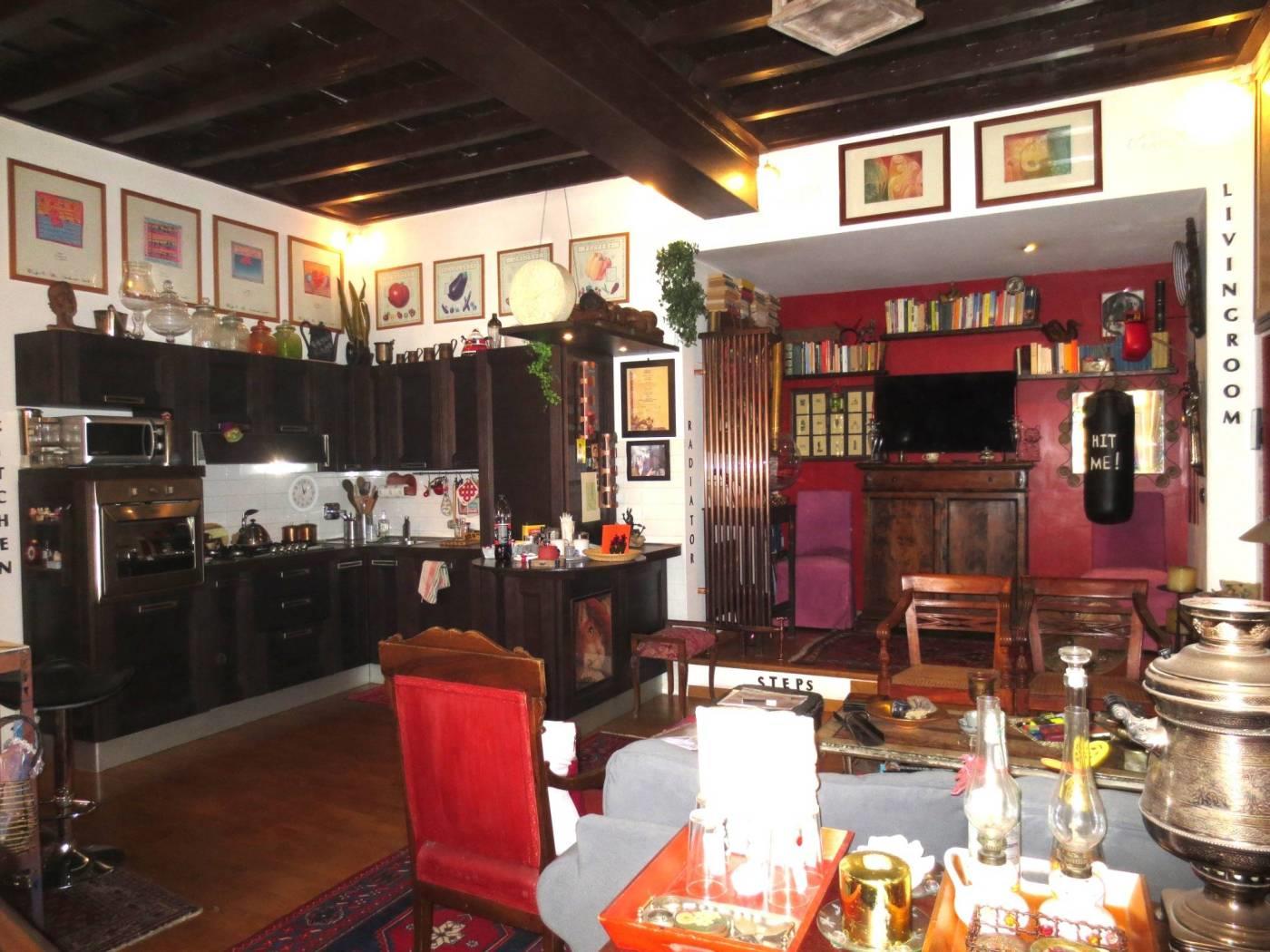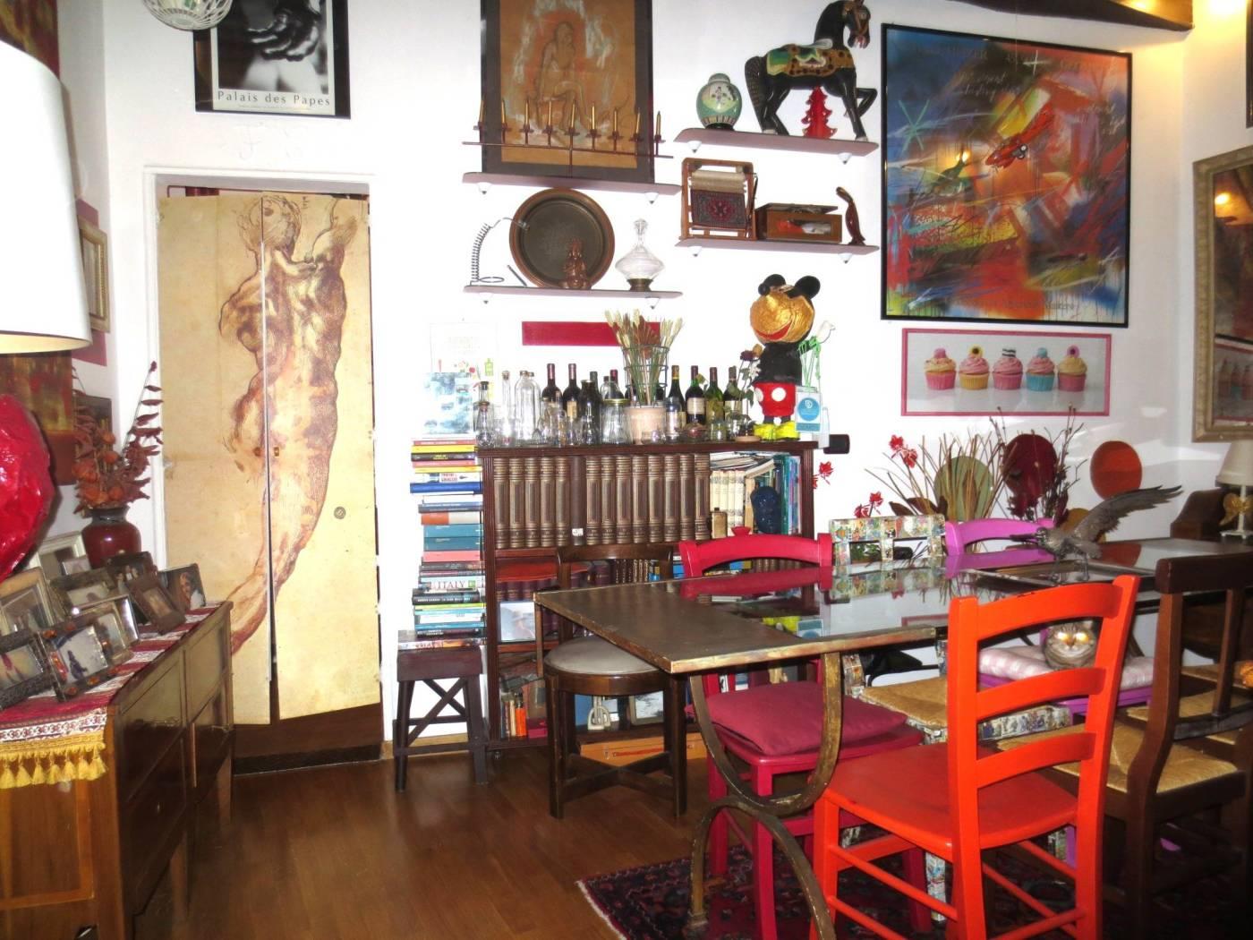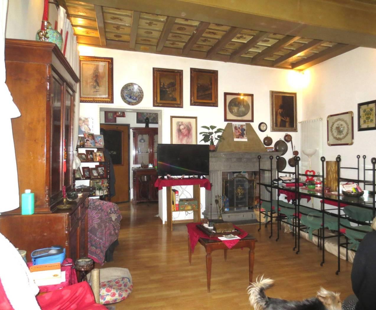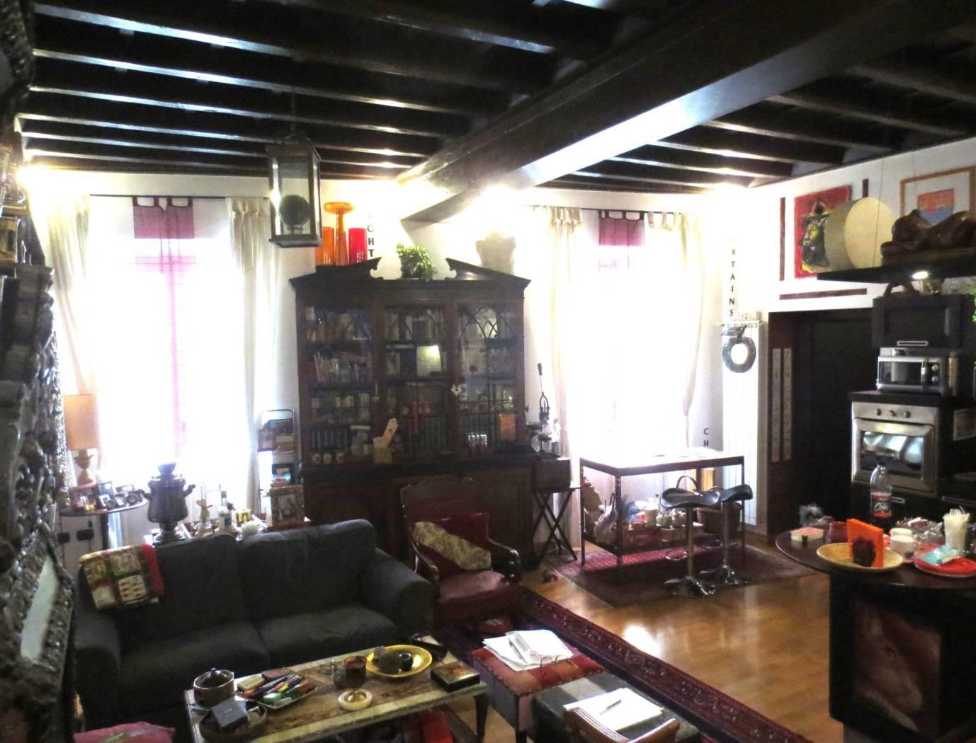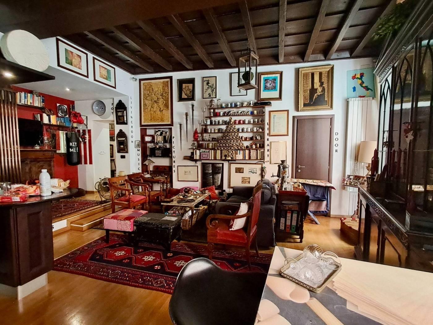 L'appartamento è composto da un ingresso, un salone con camino che affaccia su via Ripetta ed un secondo soggiorno con affaccio esterno e con cucina a vista e attigua camera da pranzo (eventuale terza camera da letto).