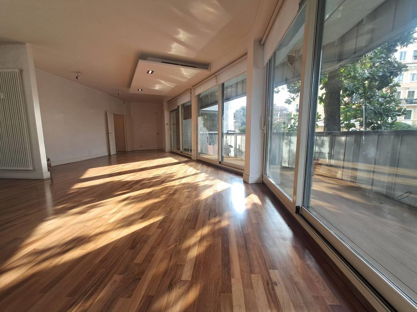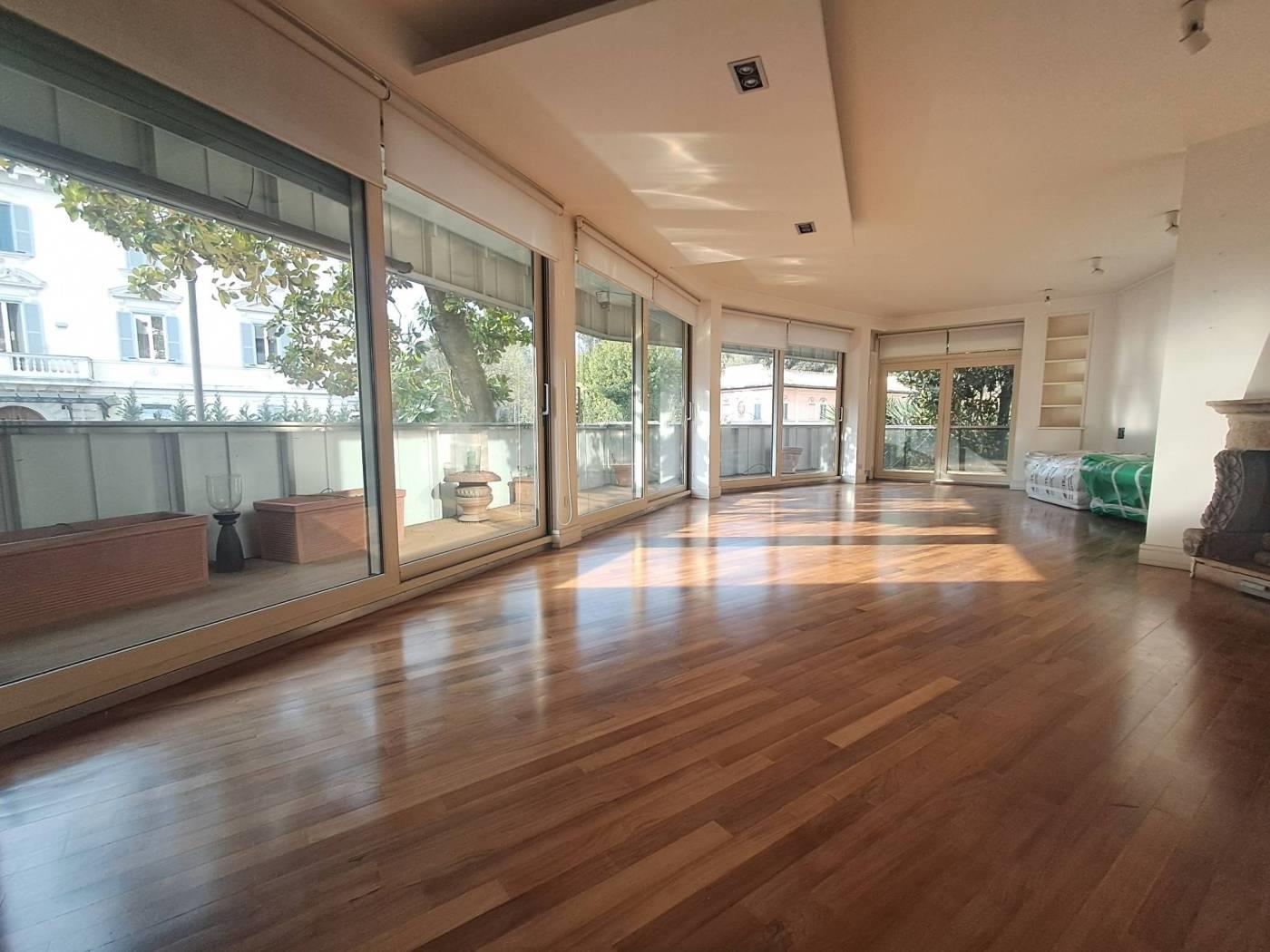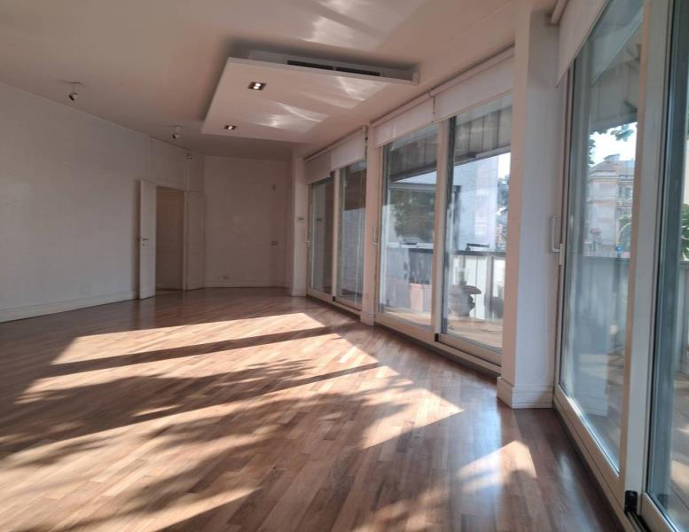 In palazzo signorile situato nel tratto di via Salaria adiacente via Panama e via Chiana, un appartamento posto al primo piano con ascensore. L'immobile ha una superficie di 180 metri quadrati ed è in ottime condizioni. E' composto da un ingresso/galleria che si apre su un ampio salotto con camino e con grandi vetrate apribili che permettono di accedere alla terrazza di circa 30 metri quadrati che gira tutta intorno alla rappresentanza composta anche da una sala da pranzo separata. Tutta questa zona risulta essere molto luminosa e con affacci gradevoli. Attigua alla sala da pranzo abbiamo una bella cucina e una zona servizio comn camera e bagno. La zona notte è composta da una camera da letto principale preceduta da un disimpegno con armadi a muro ed un bagno e da altre due camere da letto più piccole con un secondo bagno padronale. Il riscaldamento è centralizzato ed è presente l'aria condizionata. L'immobile ha inoltre una cantina di pertinenza