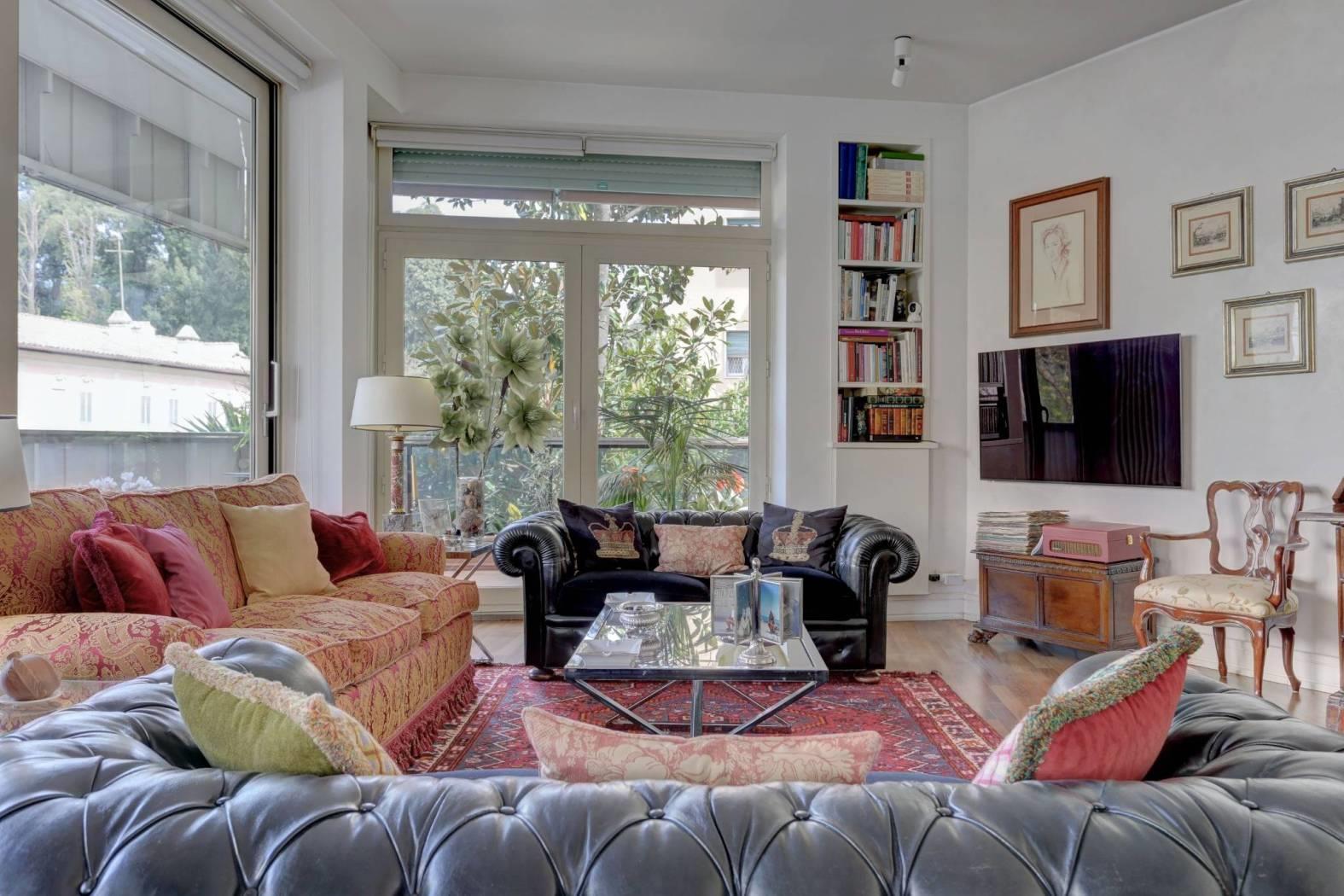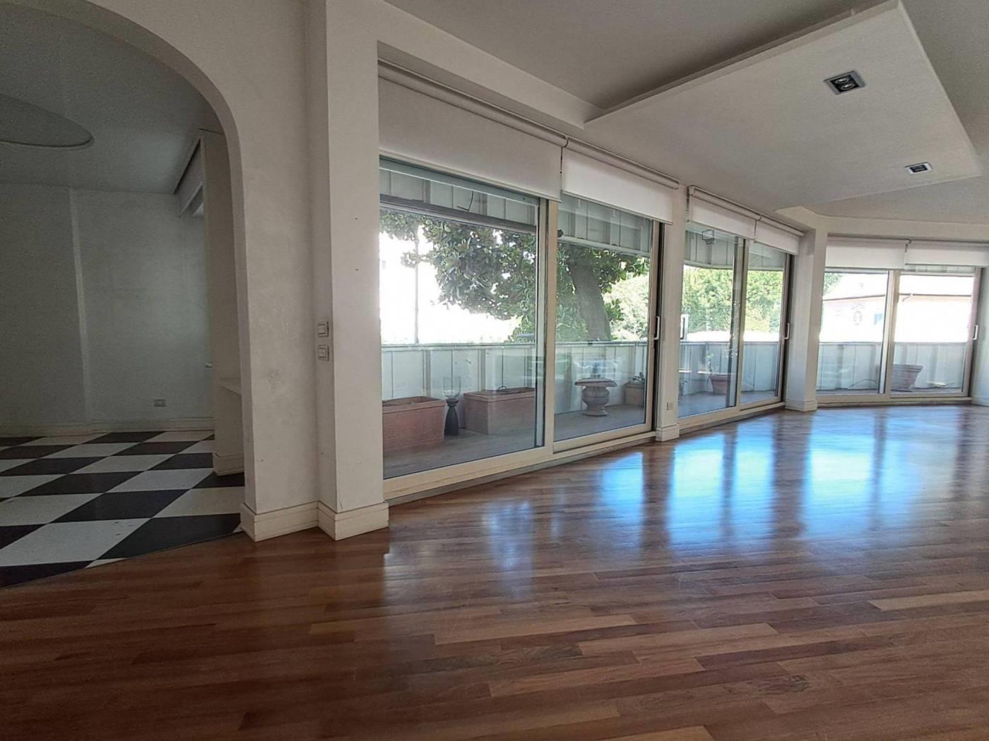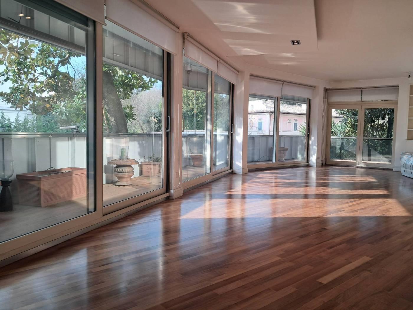 In palazzo signorile situato nel tratto di via Salaria adiacente via Panama e via Chiana, un appartamento posto al primo piano con ascensore. L'immobile ha una superficie di 180 metri quadrati ed è in ottime condizioni. E' composto da un ingresso/galleria che si apre su un ampio salotto con camino e con grandi vetrate apribili che permettono di accedere alla terrazza di circa 30 metri quadrati che gira tutta intorno alla rappresentanza composta anche da una sala da pranzo separata. Tutta questa zona risulta essere molto luminosa e con affacci gradevoli. Attigua alla sala da pranzo abbiamo una bella cucina e una zona servizio comn camera e bagno. La zona notte è composta da una camera da letto principale preceduta da un disimpegno con armadi a muro ed un bagno e da altre due camere da letto più piccole con un secondo bagno padronale. Il riscaldamento è centralizzato ed è presente l'aria condizionata. L'immobile ha inoltre una cantina di pertinenza