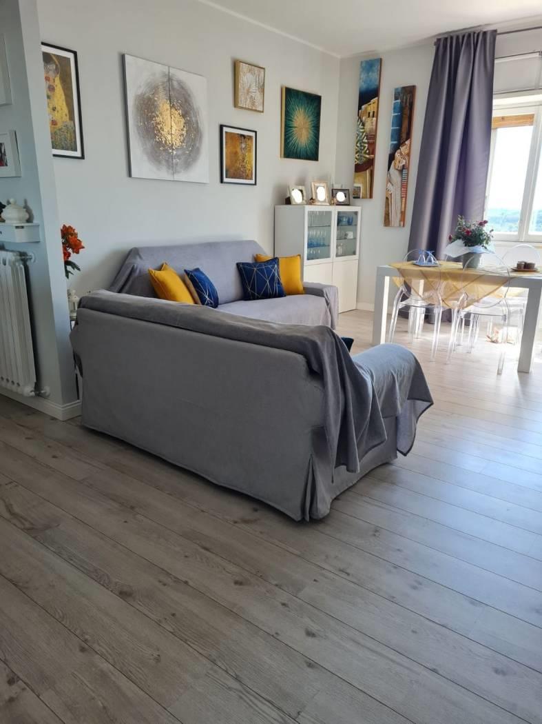 VIA TIBURTINA VALERIA adiacente Tivoli Terme e all'omonimo e famoso Centro termale proponiamo in vendita in uno stabile in cortina un ampio quadrilocale di 130mq .c.a (come da visura catastale) Posto piano 5° totalmente e finemente ristrutturato così suddiviso: Ingresso, Salone Due( 2) Camere (1)Cameretta, ampia Cucina ,corridoio, Doppi servizi, due (2) balconi di cui uno regolarmente verandato. NOTE: La doppia esposizione angolare a sud\ovest rende la proprietà particolarmente silenziosa e luminosa per l'intero giorno godendo di una splendida vista con affaccio libero, a completamento abbiamo un comodo box auto di 22mq.c.a. a pochi metri da casa. La recente ristrutturazione (2018)stile contemporaneo moderno e la scelta dei materiali donano alla proprietà un piacevole impatto visivo e qualitativo per scelta e il gusto della posa dei materiali scelti , la composizione interna permette facilmente di apportare (se necessario) ulteriori migliorie degli ambienti tra cucina e salone creando cosi facendo un 'importante e accogliente zona living gli impianti sono nuovi certificati a norma di legge porte interne bianche gres effetto parquet nei vari ambienti (climatizzati)portone blindato tende da sole bagni e cucina totalmente nuovi. La zona permette con facilità di raggiungere il centro di Guidonia o di arrivare a Roma con Via tiburtina o la Tangenziale ,raggiungiamo facilmente Tivoli e la storica villa adriana. Immobile visionabile nel fine settimana su appuntamento. NOTE: cucina e climatizzatori sono esclusi dal prezzo .