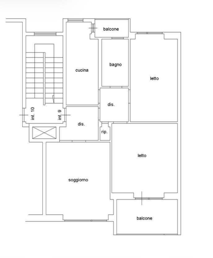 Composto da: ingresso, ripostiglio, soggiorno con terrazzino, due camere, ampio bagno, cucina abitabile con balcone.
