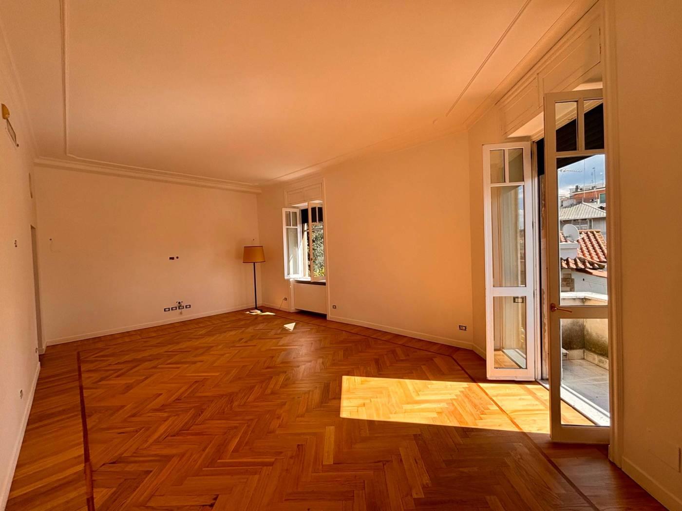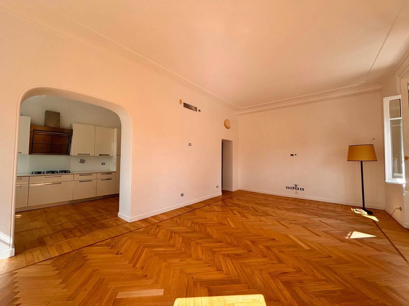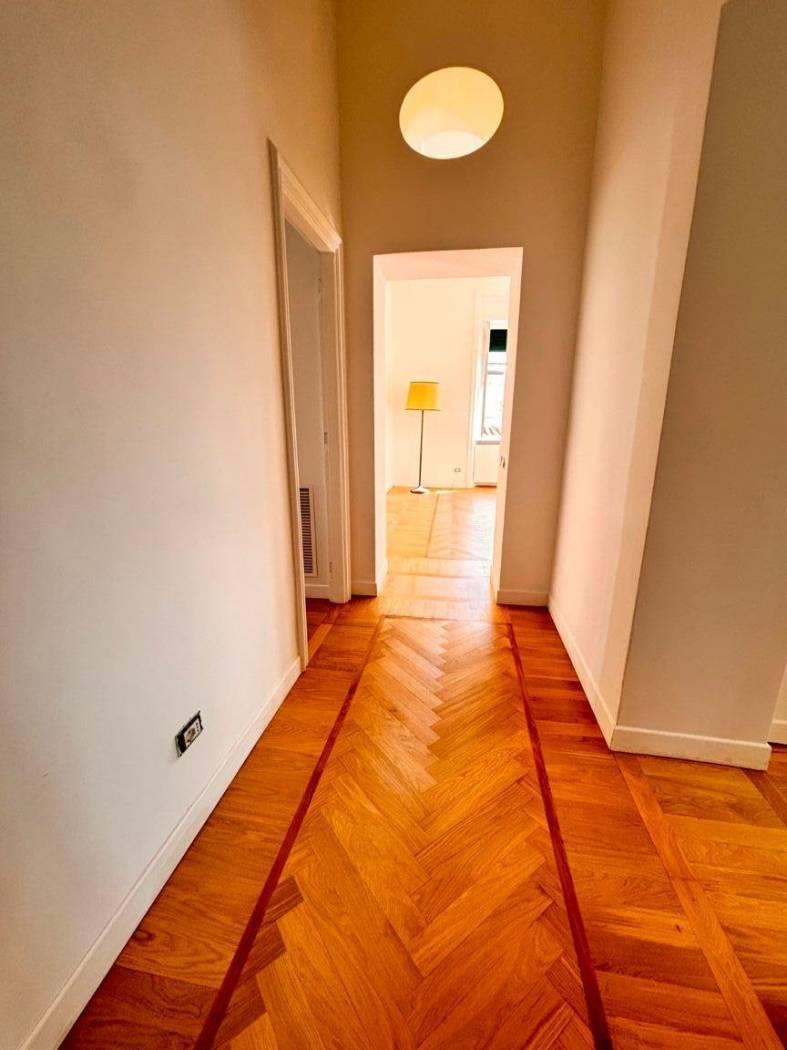 Una distribuzione, quella attuale, razionale e funzionale alle tendenze ed esigenze abitative moderne e classiche. La pavimentazione è costituita da un elegante parquet recentemente restaurato, mentre l'immobile è stato oggetto di una diversa distribuzione di spazi interni per interventi di manutenzione generale nel 2013.