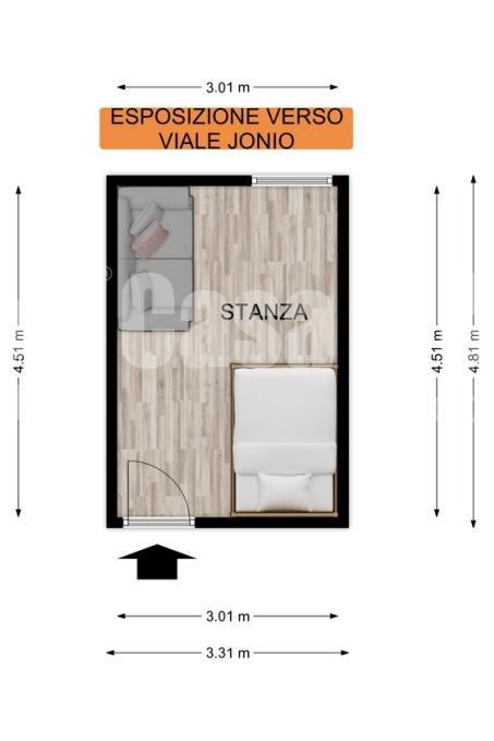 Siamo lieti di proporvi in locazione, nelle vicinanze della metro B1 fermata "Jonio", in appartamento completamente ristrutturato posto al quarto piano, esclusivamente a studentesse con garanti o lavoratrici con redditi dimostrabili, una stanza da letto di circa 13,50 mq, completamente ammobiliata e completa di ogni confort: armadio, letto ad una piazza e mezza con comodini, climatizzatore, tv, cassaforte, internet.